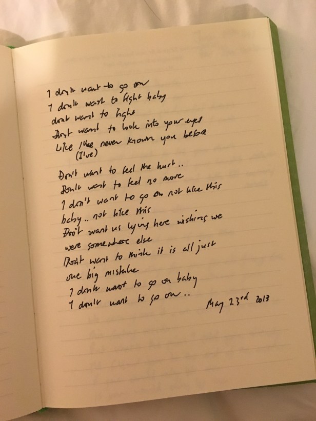 poetry Found Date: December 25, 2016Author: Dewy 0 Comments Found my poem book . I try to hand write everything down. Don’t trust the computer or the Internet. This was written when I was trying my hand at song writing. I sucked bad hehehe . Share this: Click to email a link to a friend (Opens in new window) Email Click to print (Opens in new window) Print Click to share on Facebook (Opens in new window) Facebook Click to share on LinkedIn (Opens in new window) LinkedIn Click to share on Reddit (Opens in new window) Reddit Click to share on X (Opens in new window) X Click to share on Tumblr (Opens in new window) Tumblr Click to share on Pinterest (Opens in new window) Pinterest Click to share on Pocket (Opens in new window) Pocket Click to share on Telegram (Opens in new window) Telegram Click to share on WhatsApp (Opens in new window) WhatsApp Like Loading...