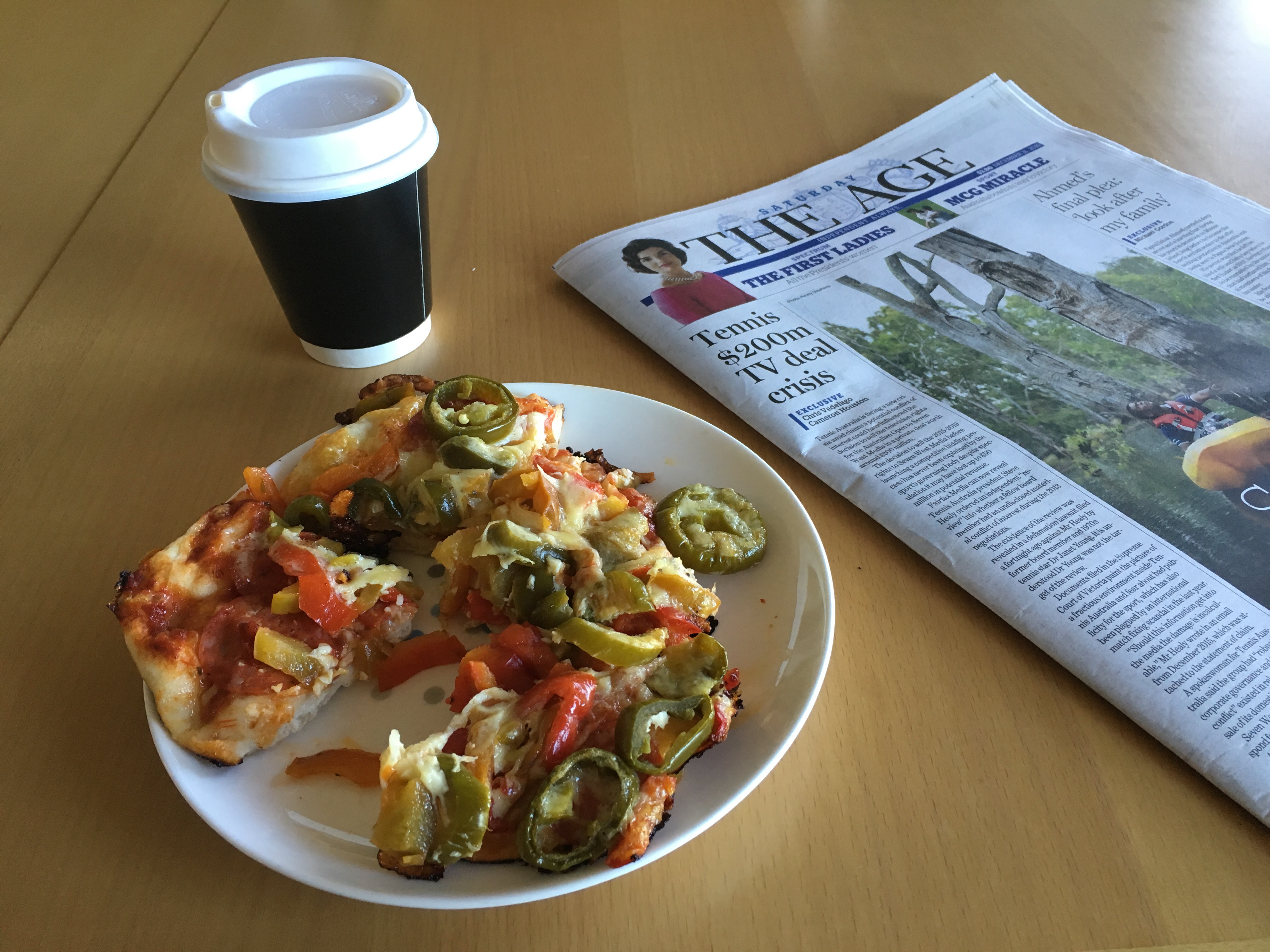 Drove down early this morning. The house is nice and quiet . Coffee and breakkie sorted. I tend to buy the Herald Sun on the weekdays for the horoscope and comics and The Age on the weekends for the lift outs. Except the lift outs today is a bit on the thin side.