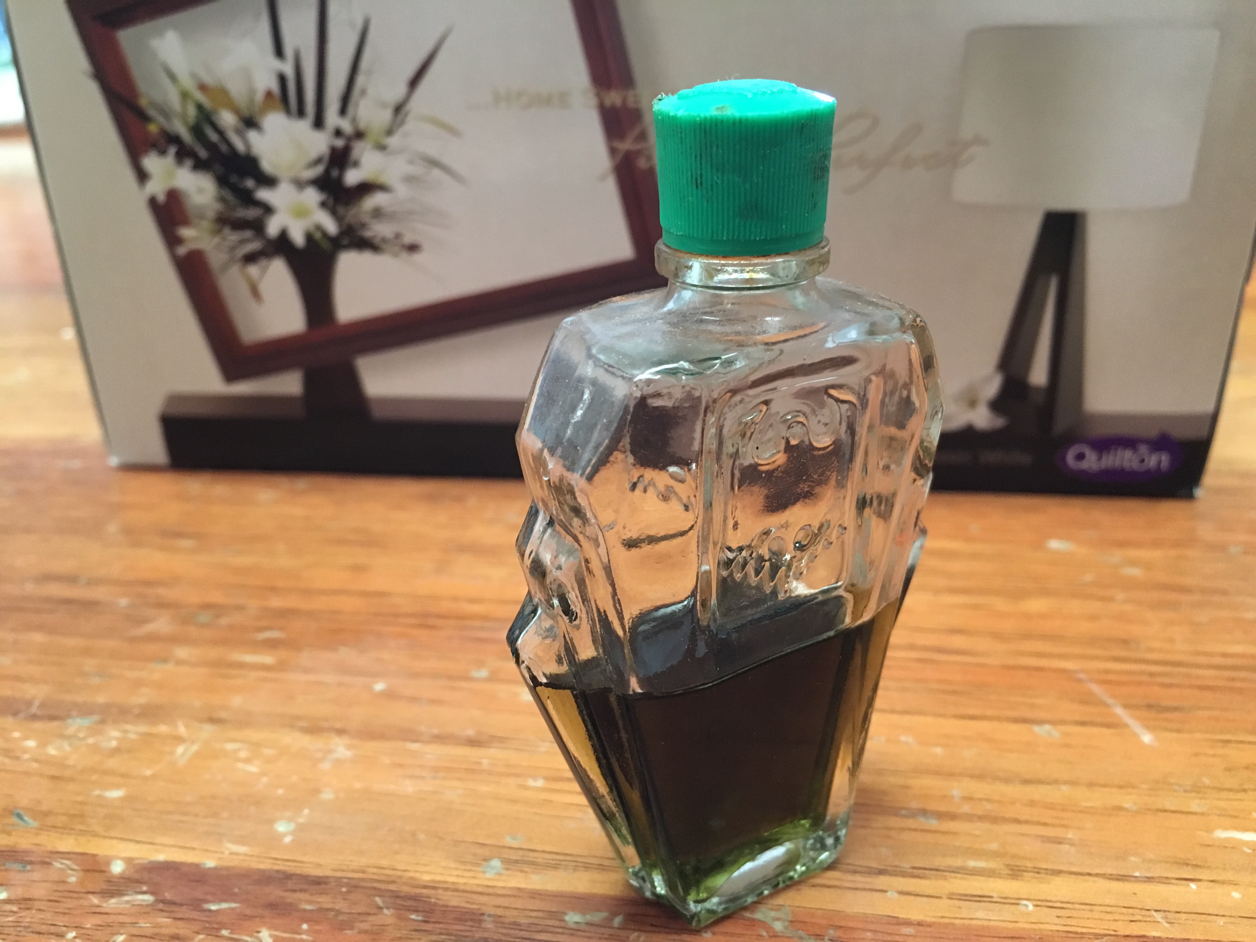 Today I’m finally chucking it in the bin. I have no use for it. Guess I’ve always kept it because the smell is familiar. My grandma used to pop it on herself .