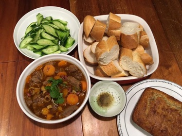 Serve with rice noodles (same as Pho noodles), lettuce, cucumber, bean shoots and herbs or with toast and fried eggs for breakfast.