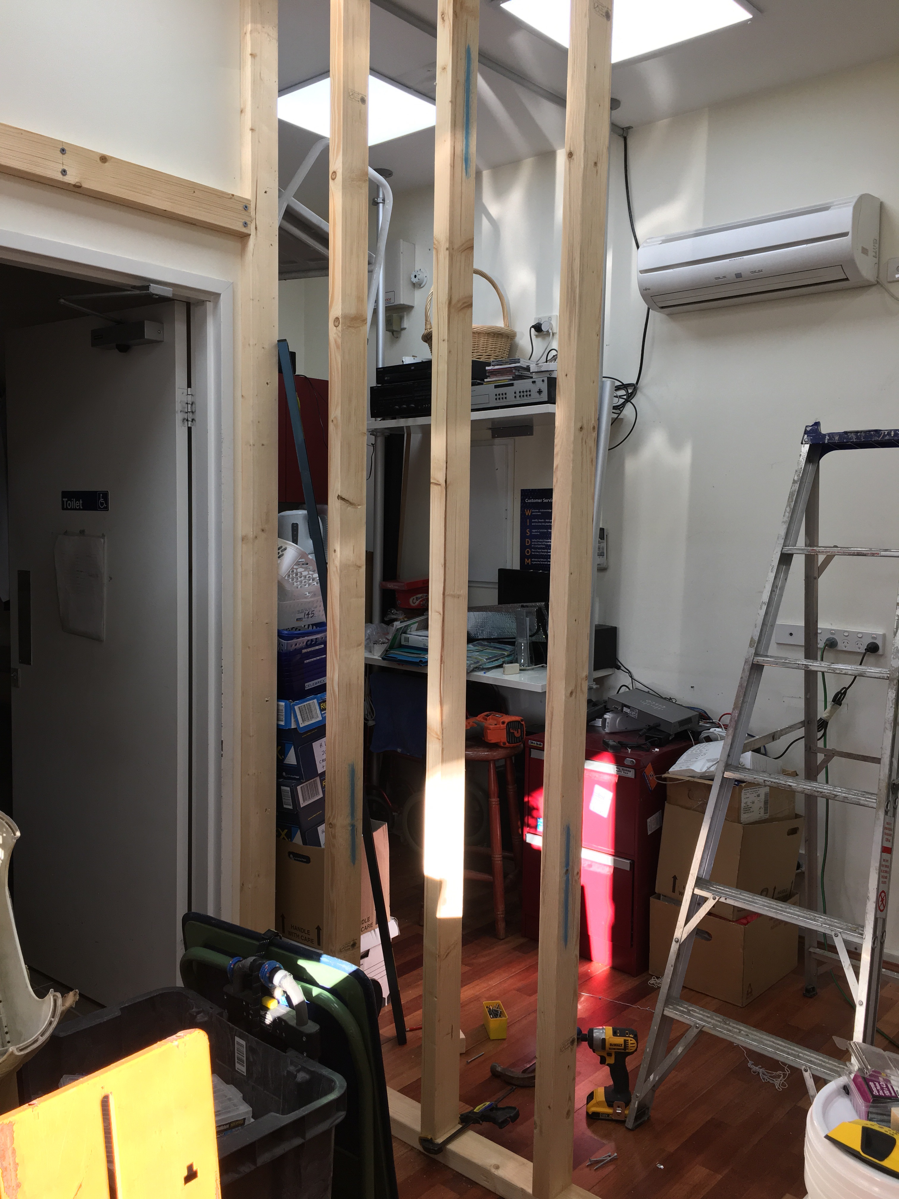 The support for the mezzanine . Against the toilet wall we will pop the kitchenette.