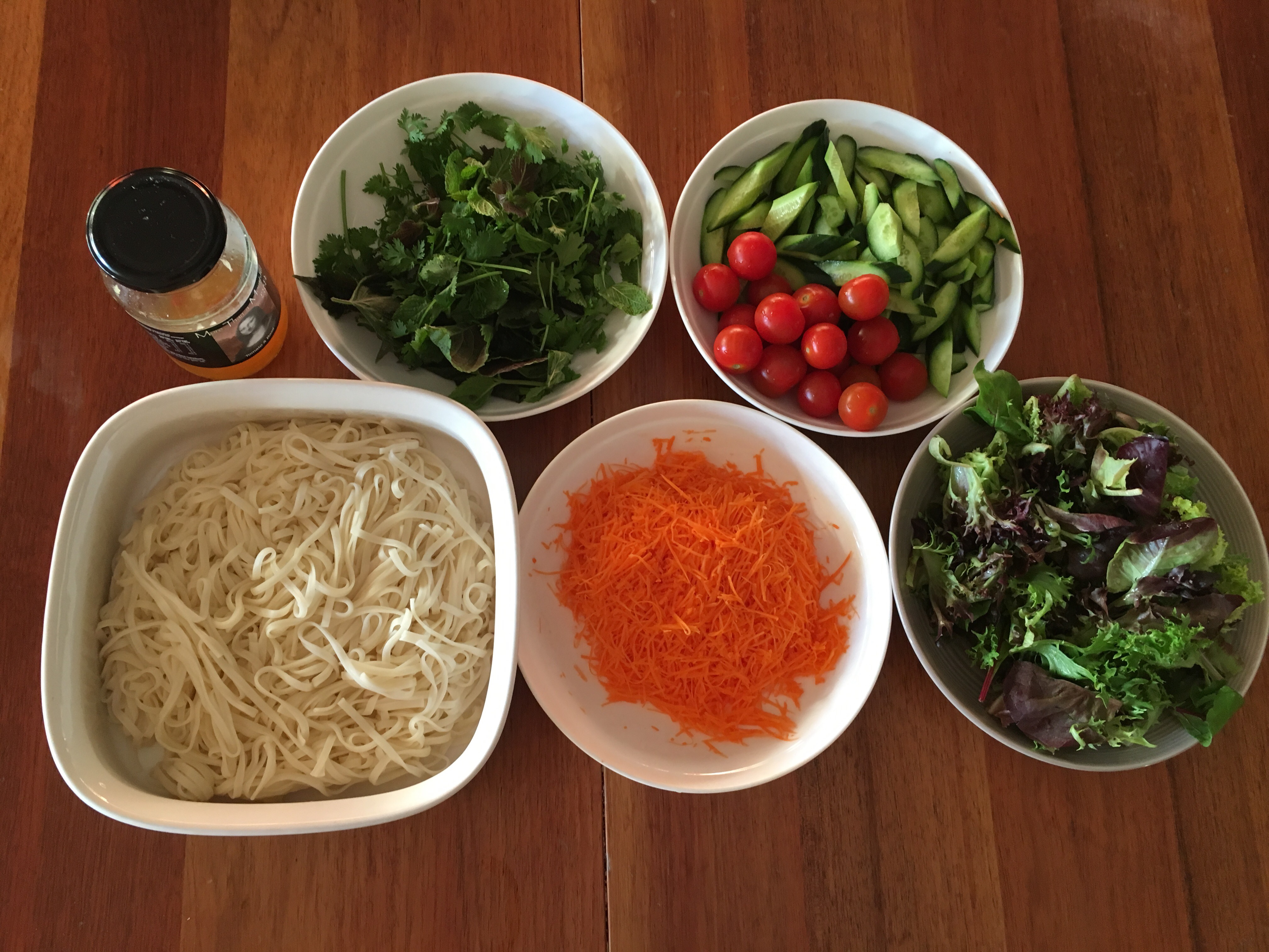 With noodles again π More greens today as I did the groceries . Forgot to buy more herbs.