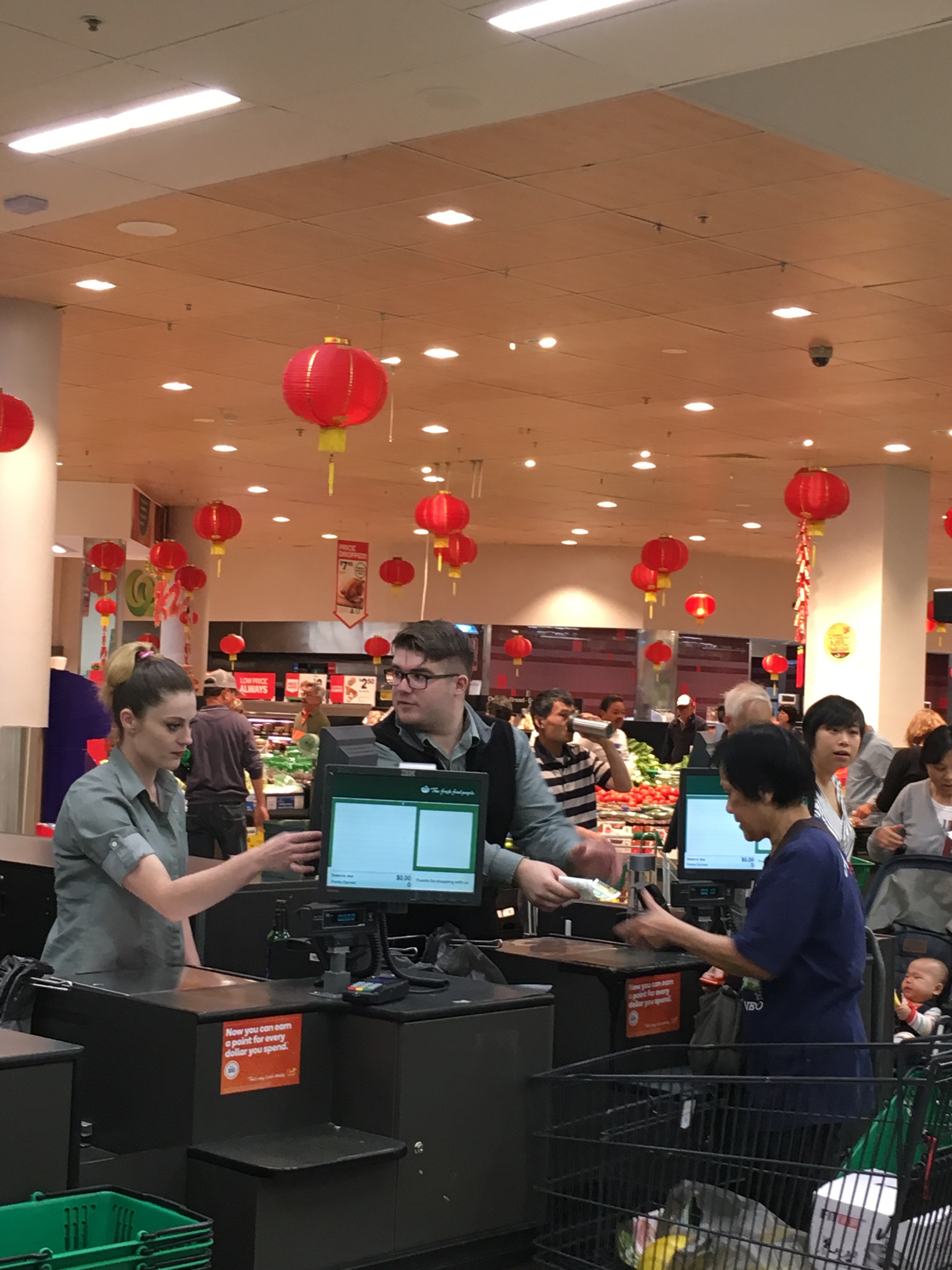 New Year decorations out at the supermarket .