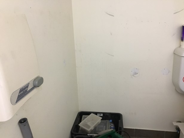 Remember the towel rail? Hubby found one of those Allen key screw so off it went . I started unscrewing the hand rail as hubby didn’t want it off citing it’s not in anyone’s way.