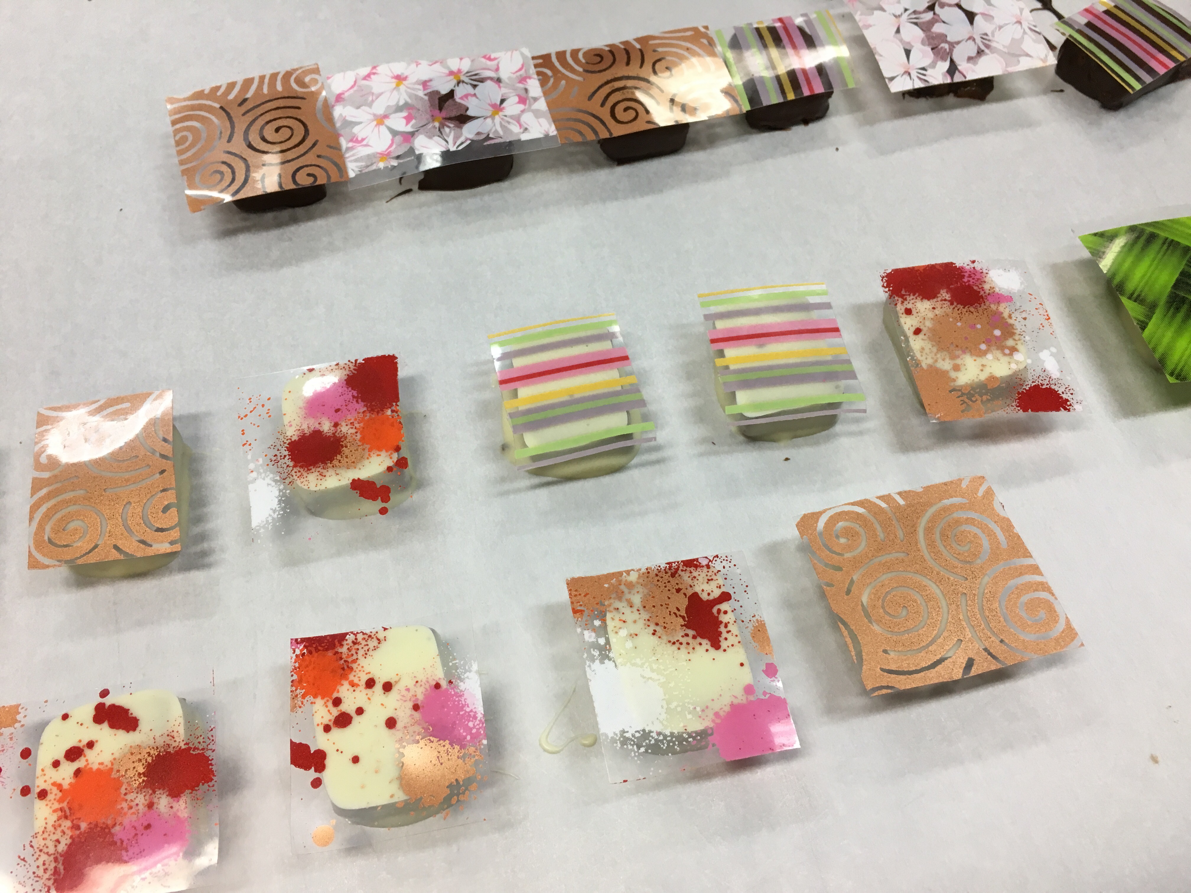 I liked making these best. The paper is transfer paper to imprint the chocolates.