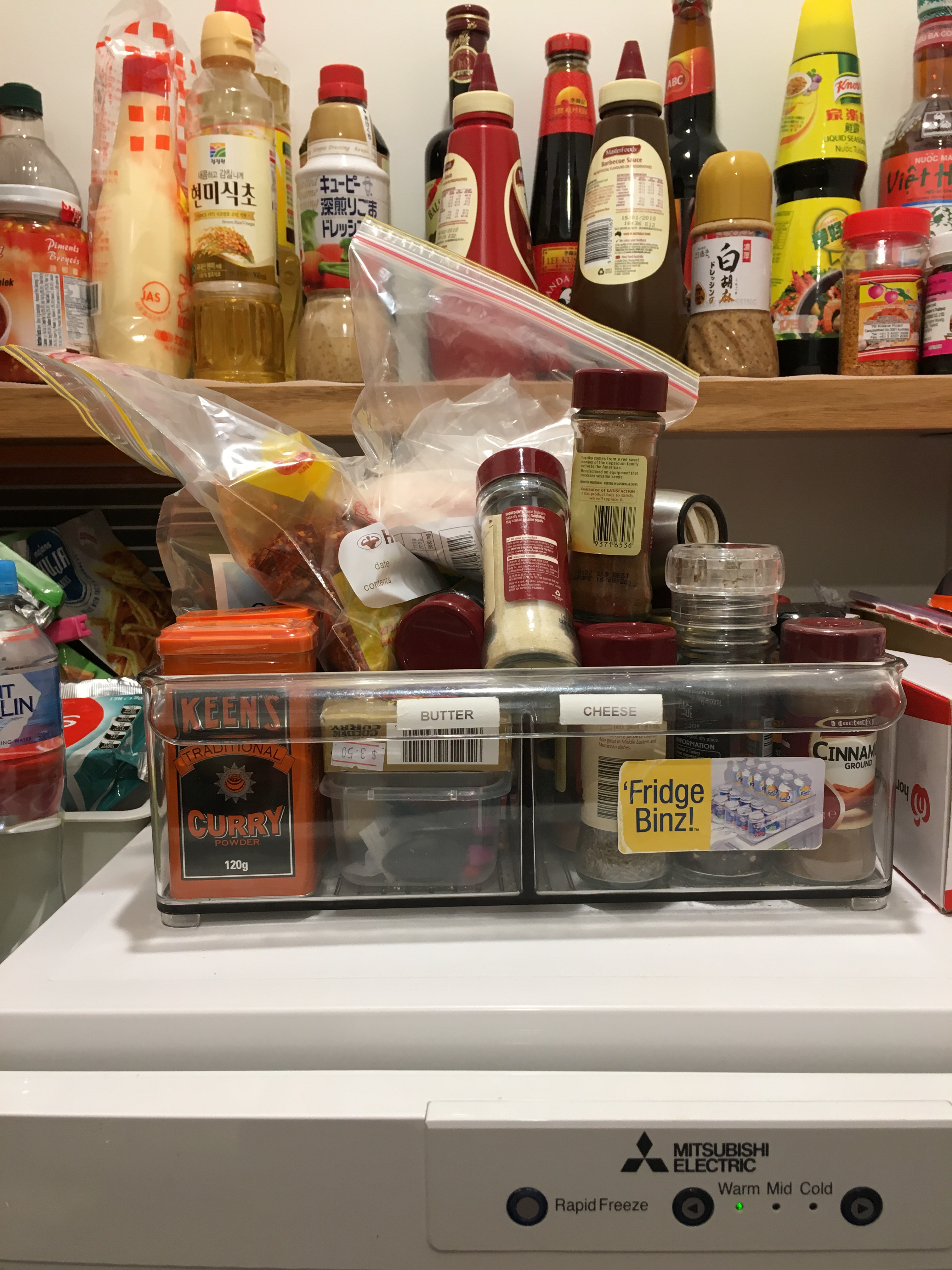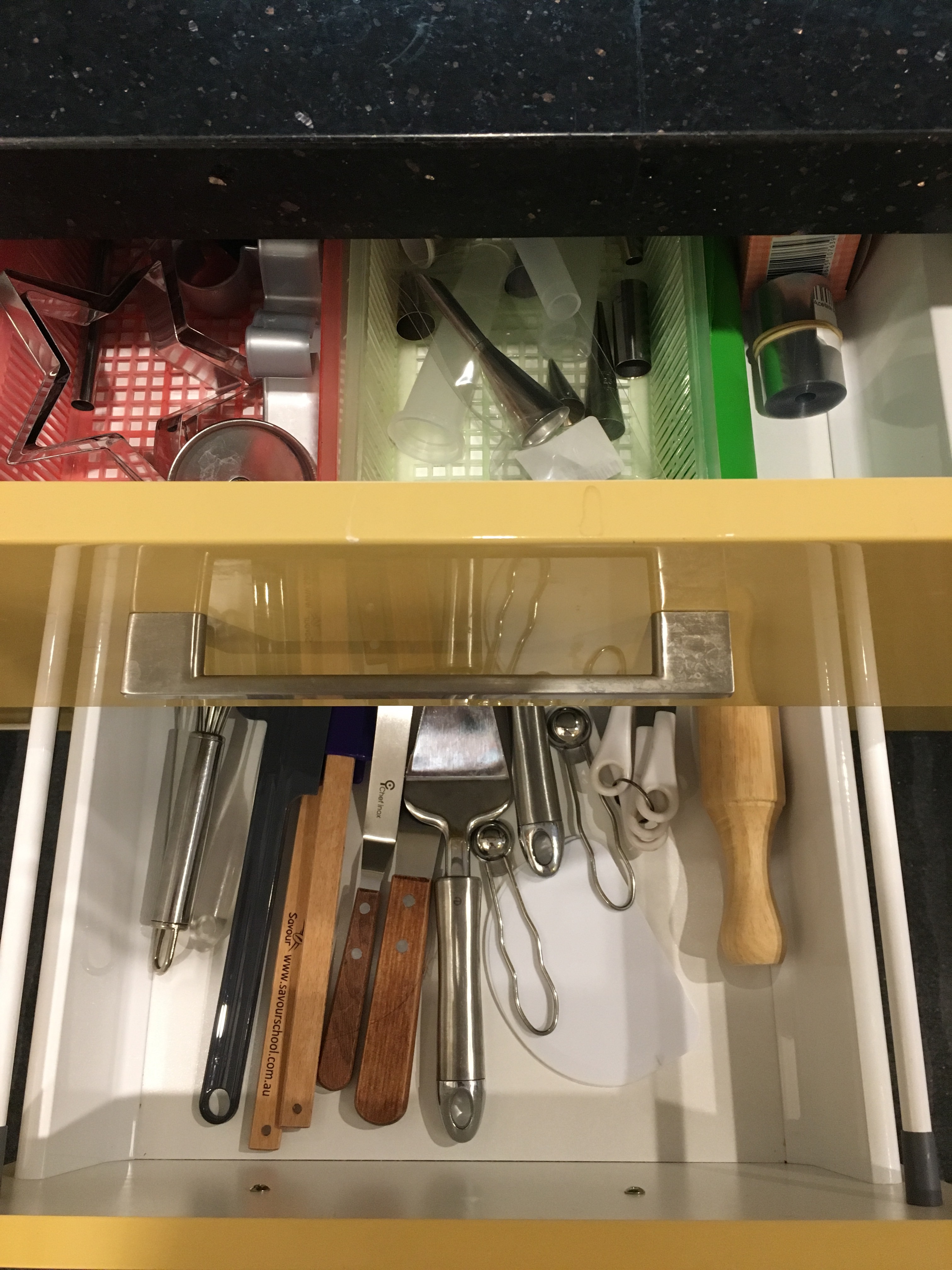 Since I sacrificed my spice drawer for my baking stuff it has nowhere to go.