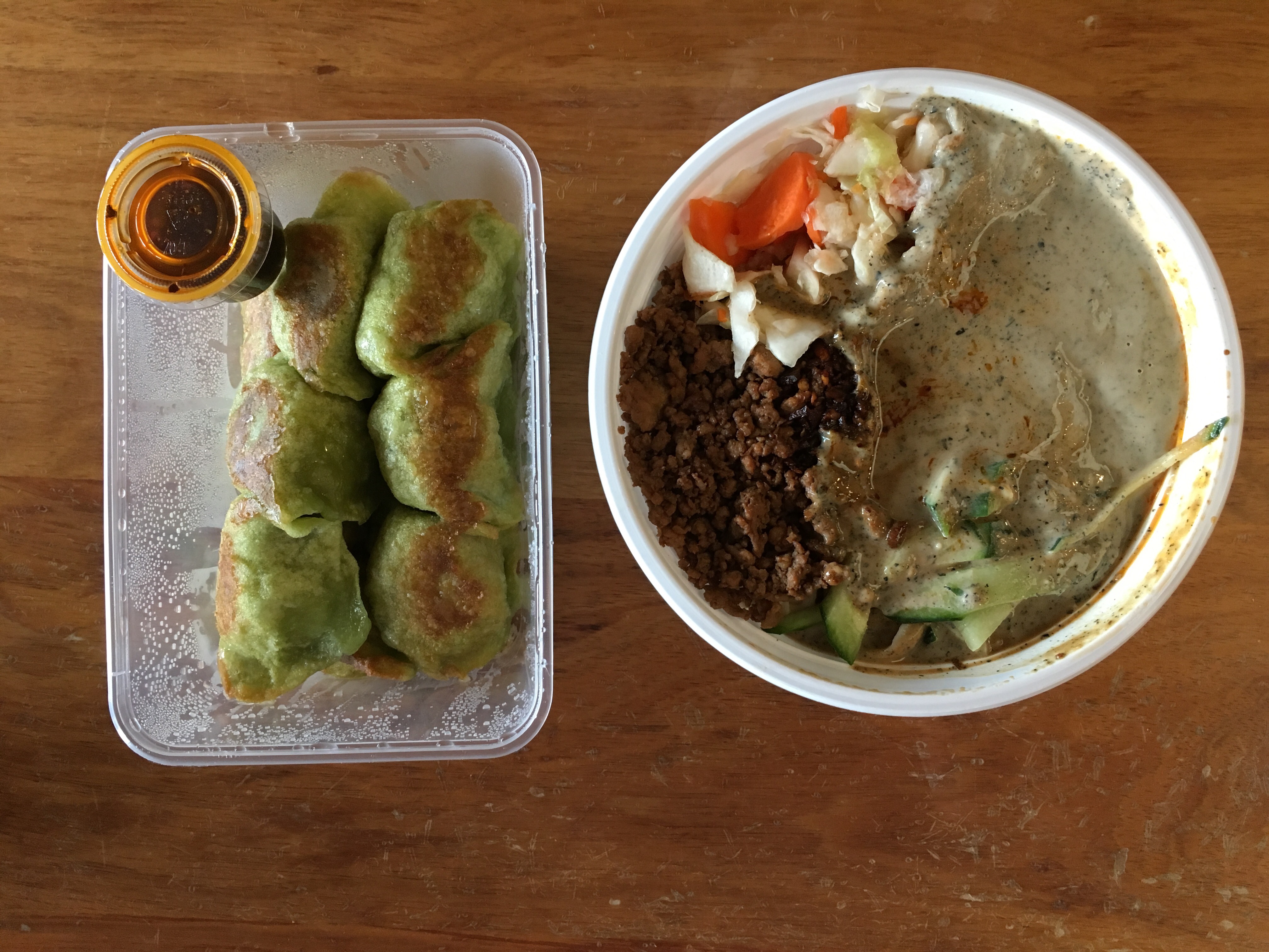 I also got lunch for us. Dan Dan noodles which is a Sichuan dish. They make their noodles fresh there and it’s then topped with mince pork, cucumber, pickles and a peanut and sesame sauce. It’s quite tasty and a bit spicy .