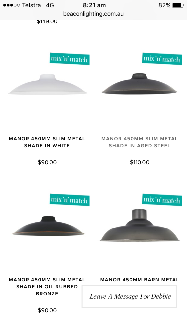 I’m thinking of replacing that white shade with one of these metal ones. I like the bottom right one.