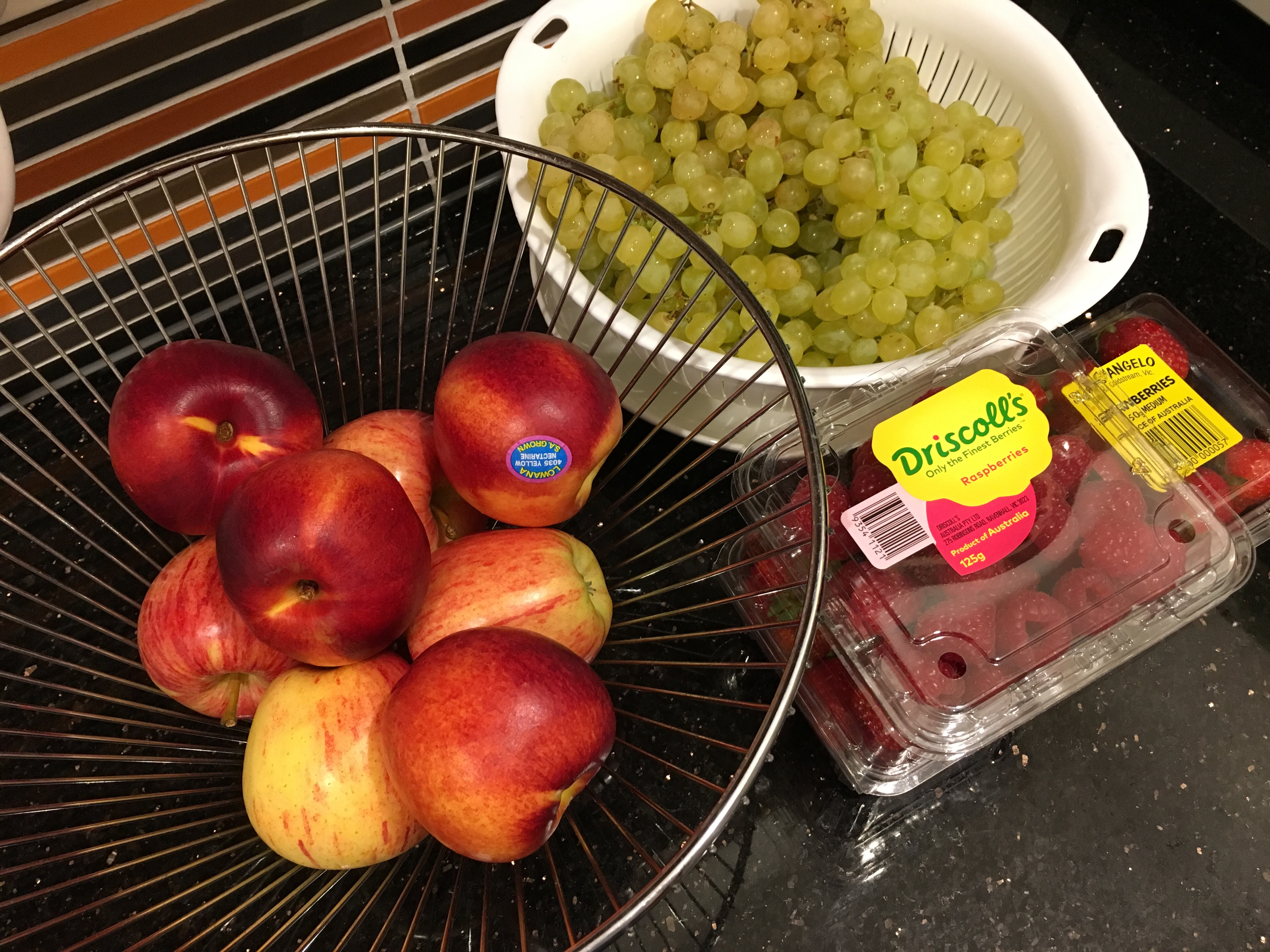 $20 bought me all of this. The strawberries were $1.99 a punnet. Apples were $4.99/kg and nectarines $6.99/kg . Can’t remember how much the sultanas were. Thought they were cheap so bought heaps . As for the raspberries I think they were $3.50 a punnet.