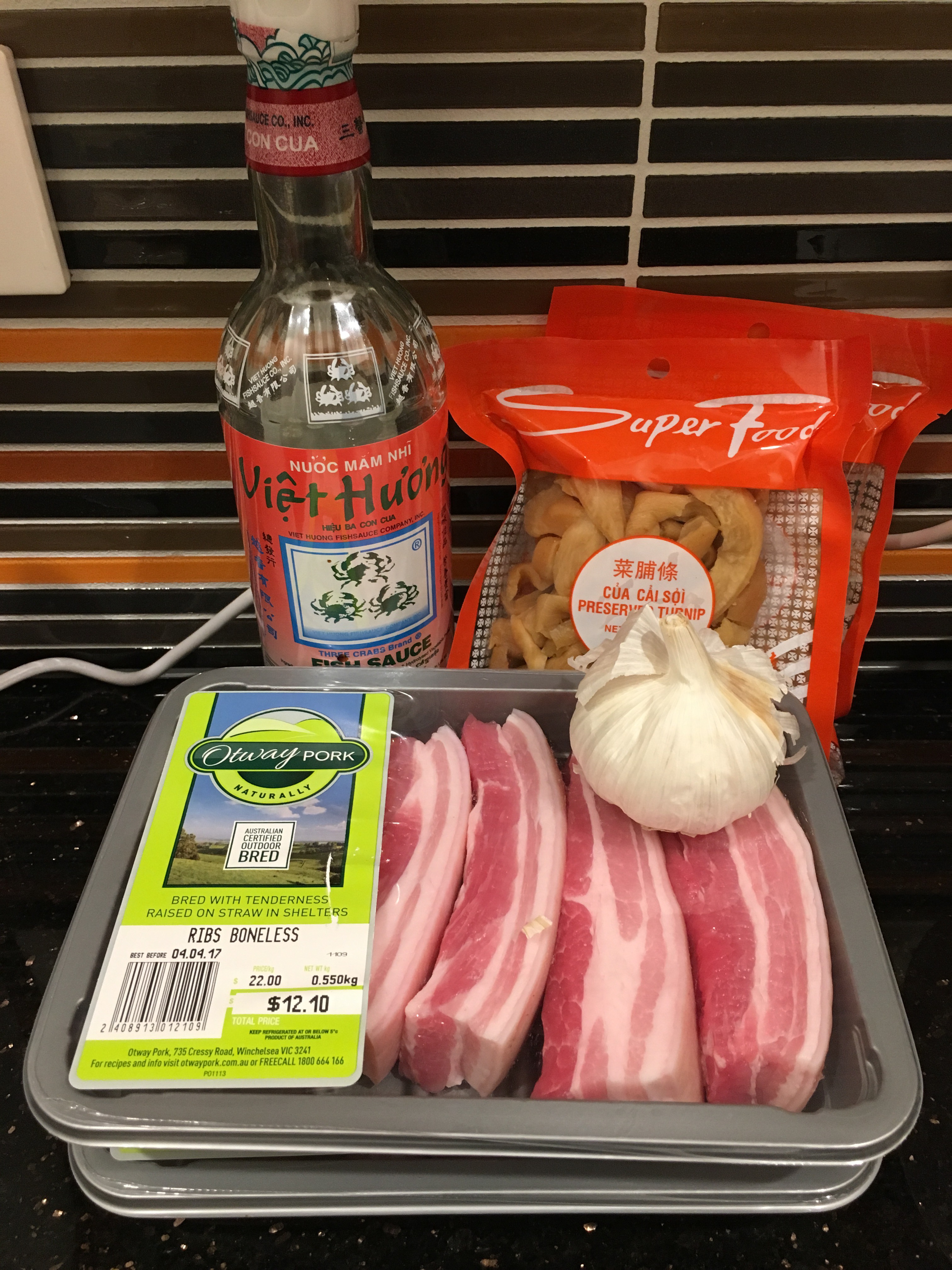 Tonight’s dinner. Simple dish to have with rice. I’m going to cut the pork and turnip into strips. Will sautée the garlic in some oil add in the pork, fish sauce, sweet soya for colouring and then the turnip until it’s got a crunch. Don’t need too much fish sauce as the turnip is salty. Need to wash the turnip first to get rid of the excess salt.