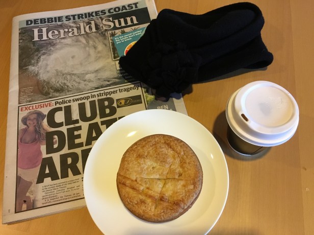 My breakfast . I didn’t have enough time so bought a pie there. Their pastry is really nice just not the filling . There’s no taste.