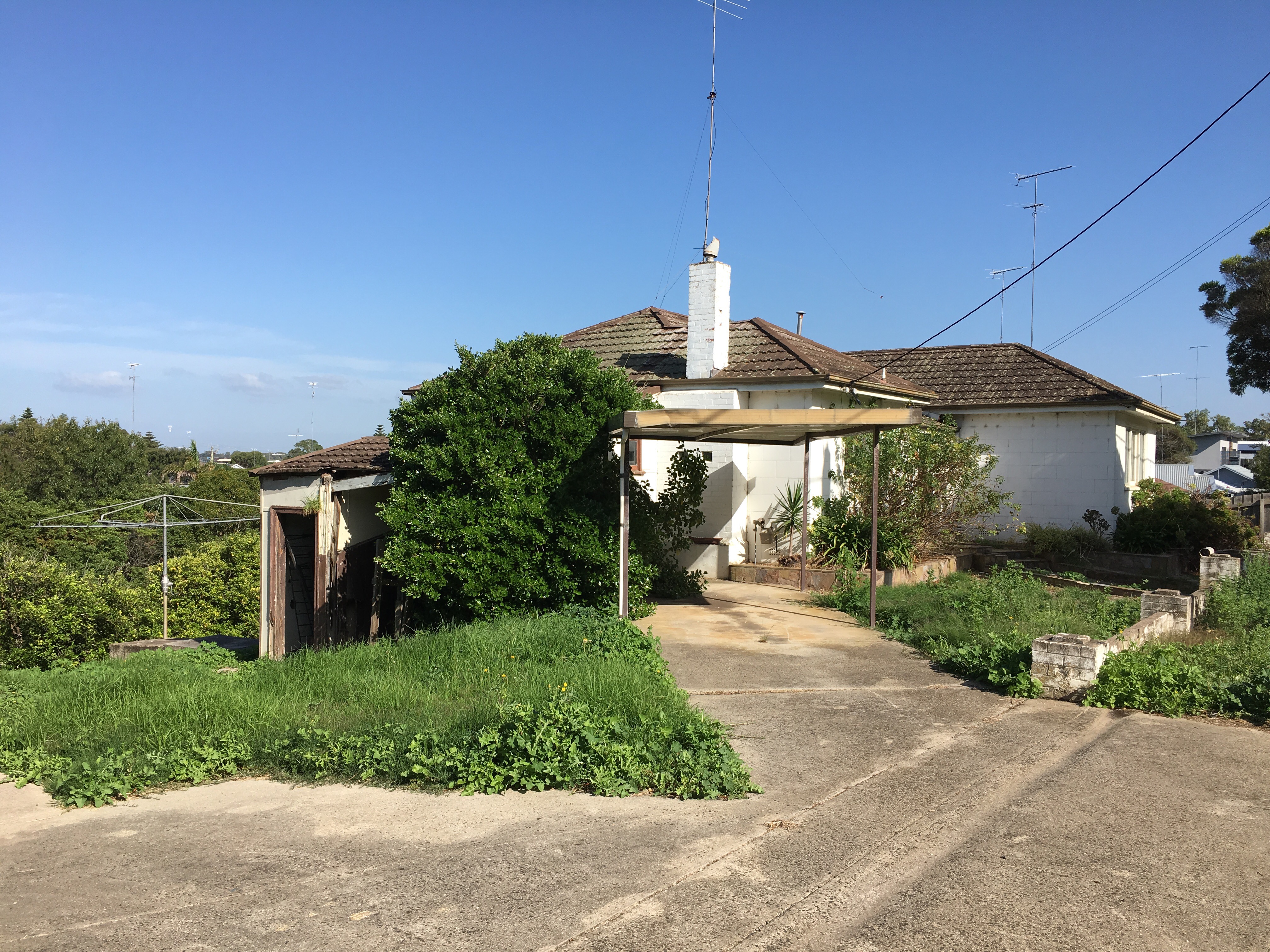 The house look lonesome in its state amongst the newer well kept beach shacks or rather beach McMansions.