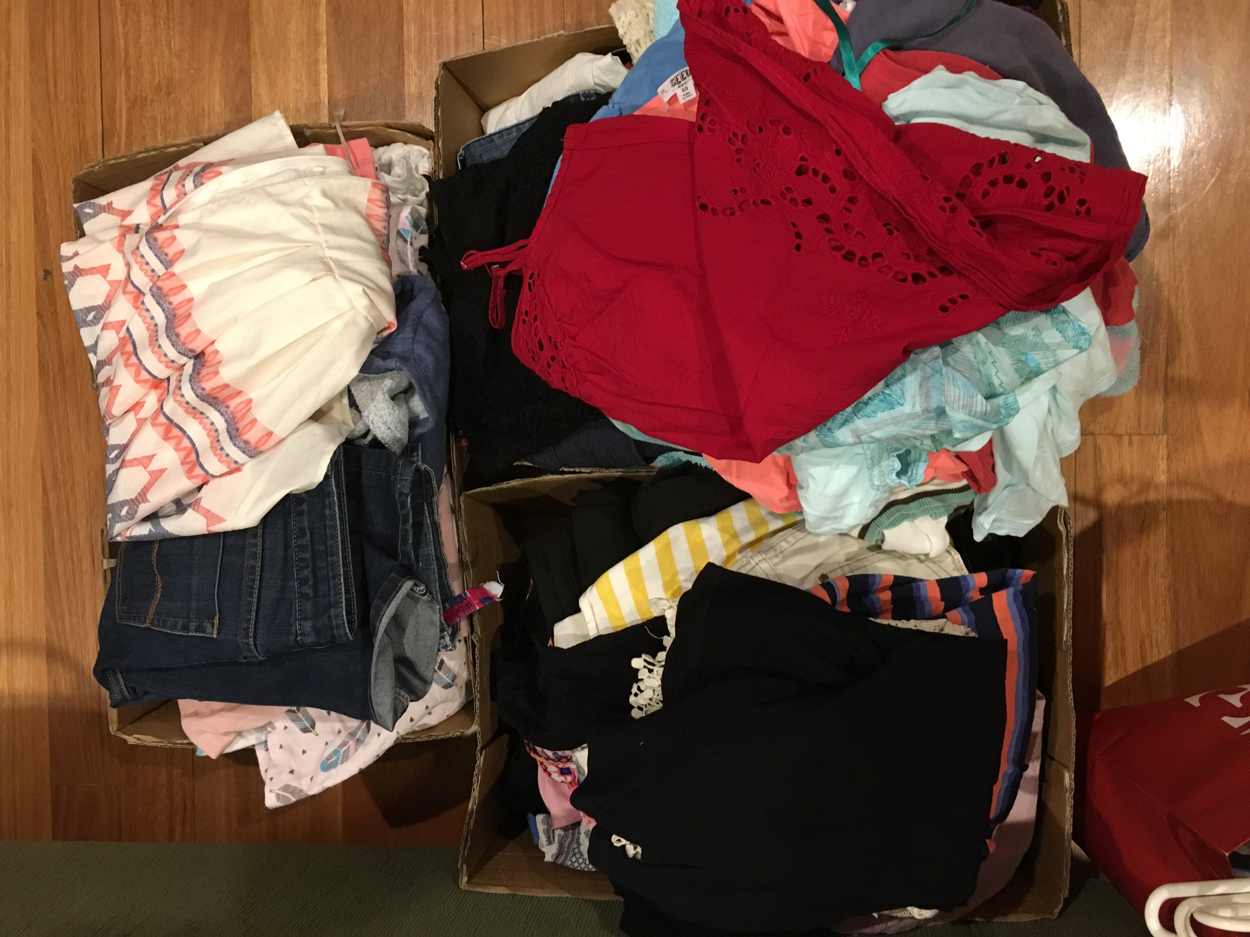 This was how much clothes we culled tonight, three boxes full of clothes no wonder they had nowhere to go except on the floor.