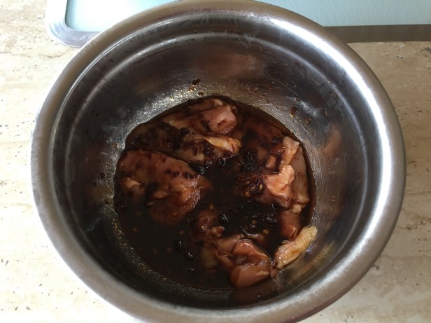 There were 5 pieces of thigh fillets in the pack thus have saved 2 for breakfast tomorrow. I’ve marinated them with some sweet soya, soy sauce, honey . Then realised I didn’t have any garlic so in went the XO sauce 😂