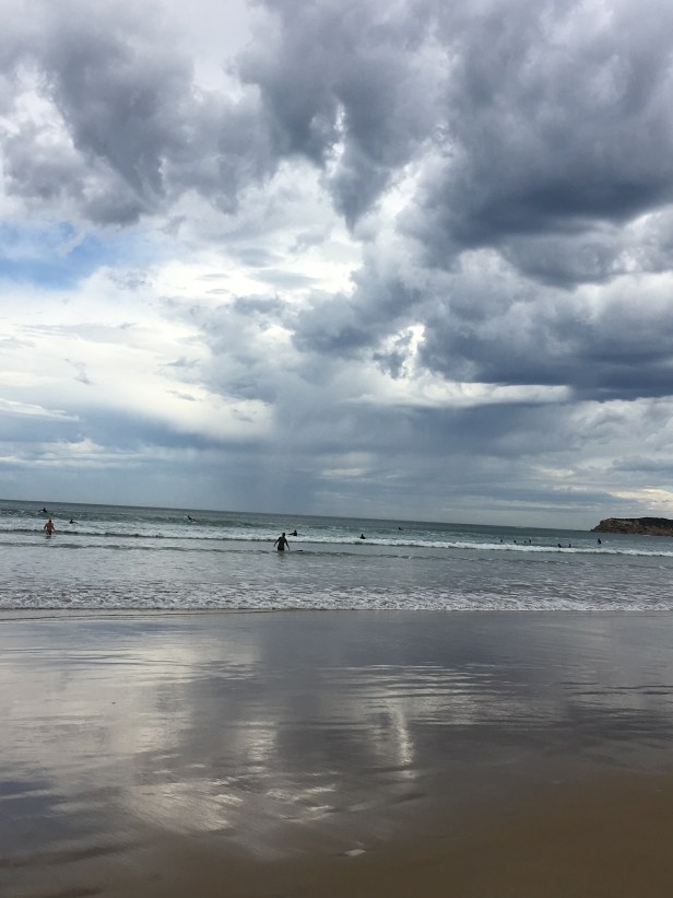 My son with his umbrella. The water was very cold. I dipped my feet in and it was like what the? It was icy cold. My son laughed. He was like did it shock you mum?