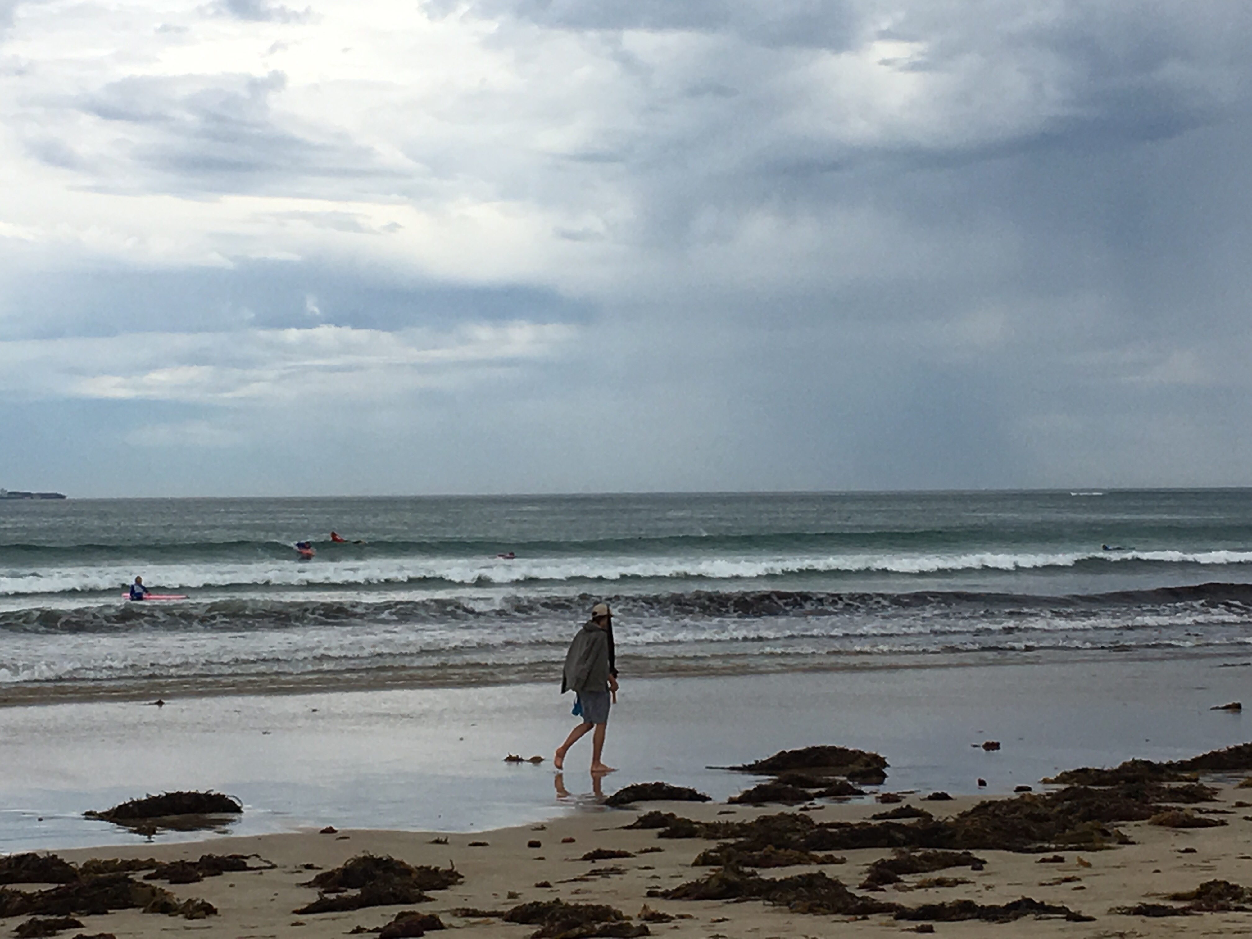 My son with his umbrella. The water was very cold. I dipped my feet in and it was like what the? It was icy cold. My son laughed. He was like did it shock you mum?