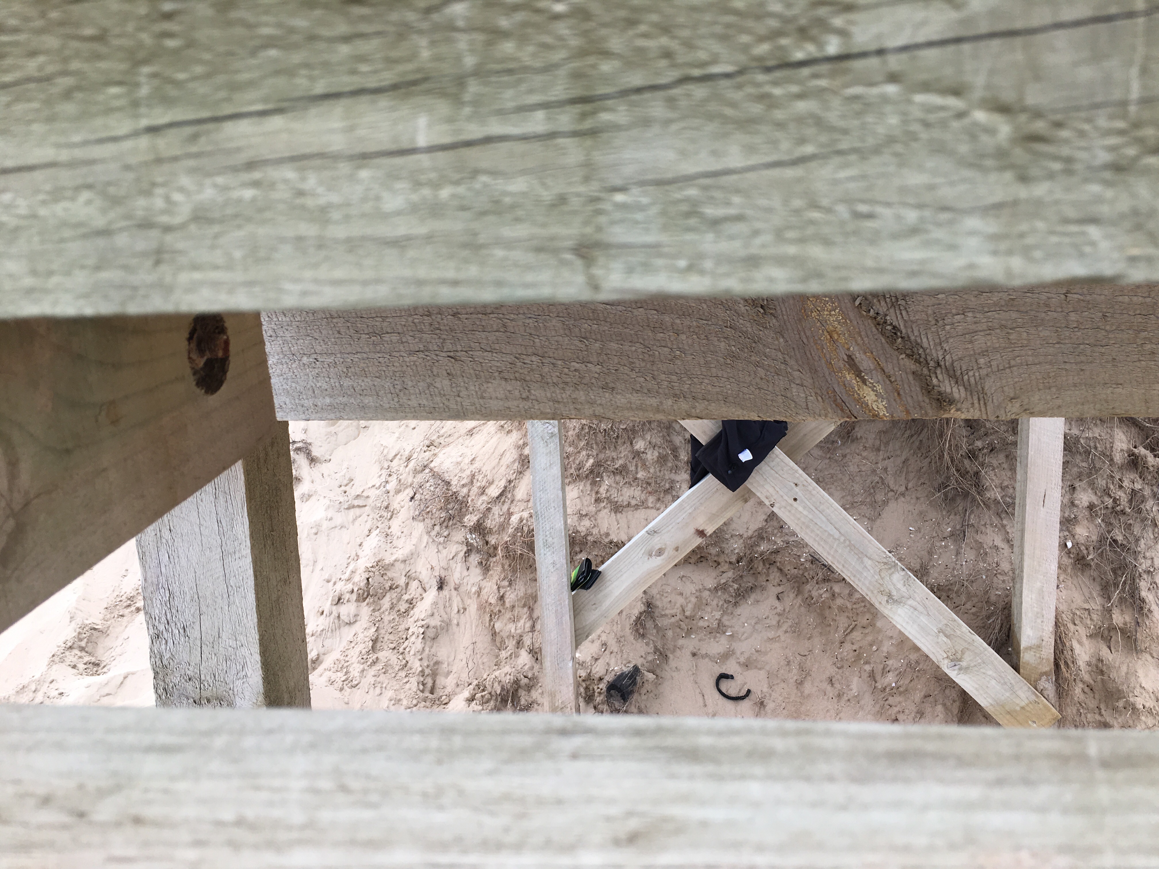 Someone’s hidey hole. Can’t believe they didn’t even bury it. Could see their wallet , phone and watch . It’s safe here but not that safe.