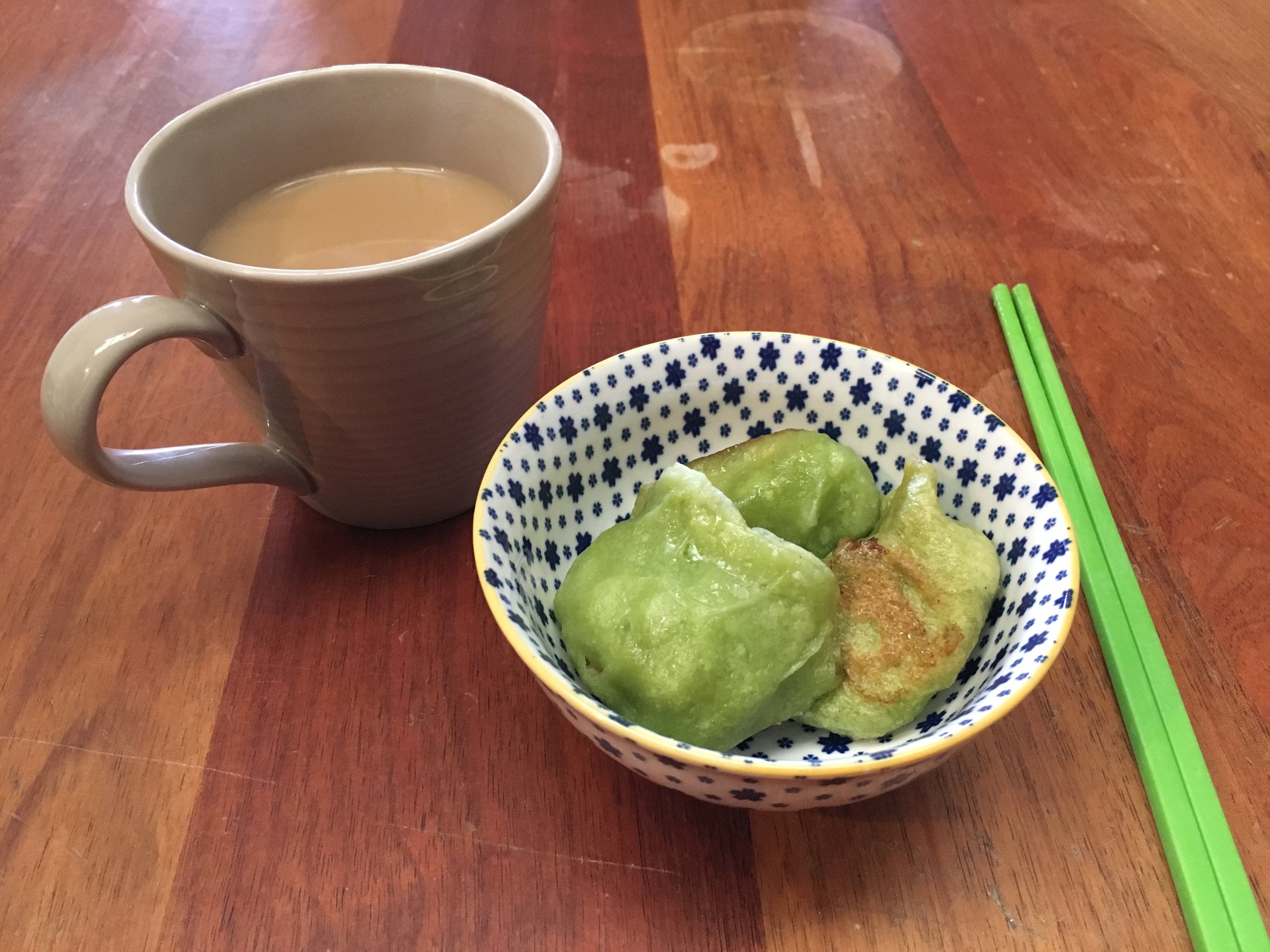 Guess he won’t need them now so we are having them for breakkie . I bought two boxes, one with vegetarian filling and one with pork .