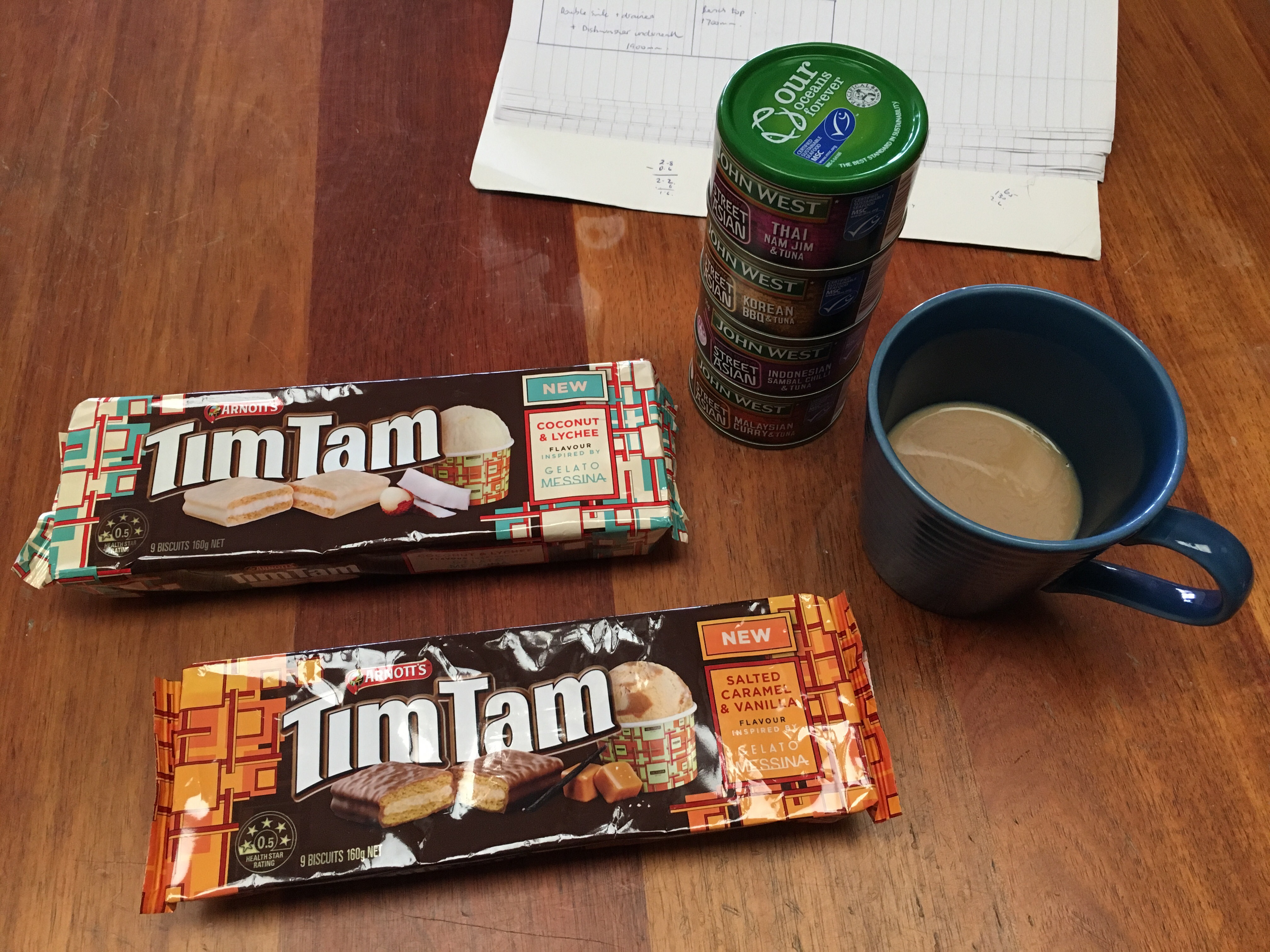 Found two packets of Tim Tam this morning when I was having my coffee. Either the kids have bought them or my niece brought them when she came over for a visit.