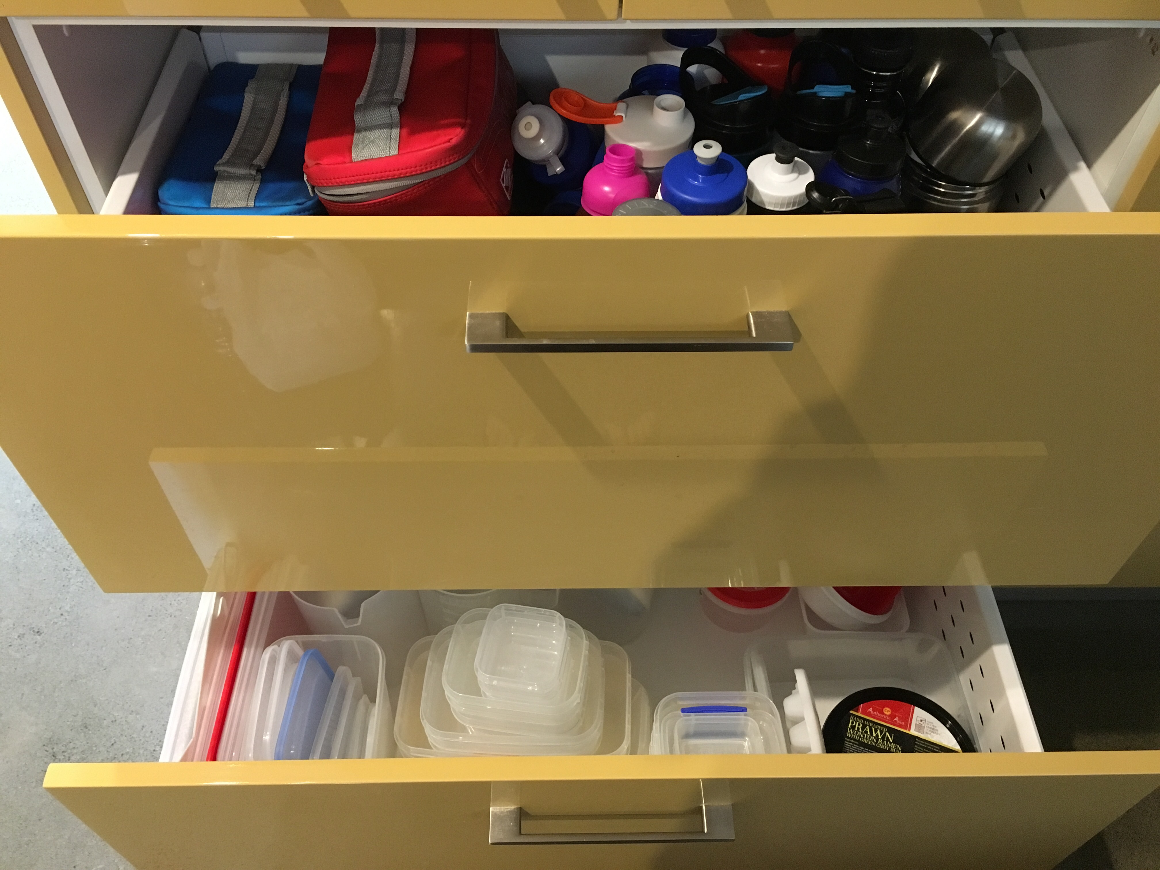 Then I’ve got these shallow ones with height of 115mm in the pantry to store dry goods .