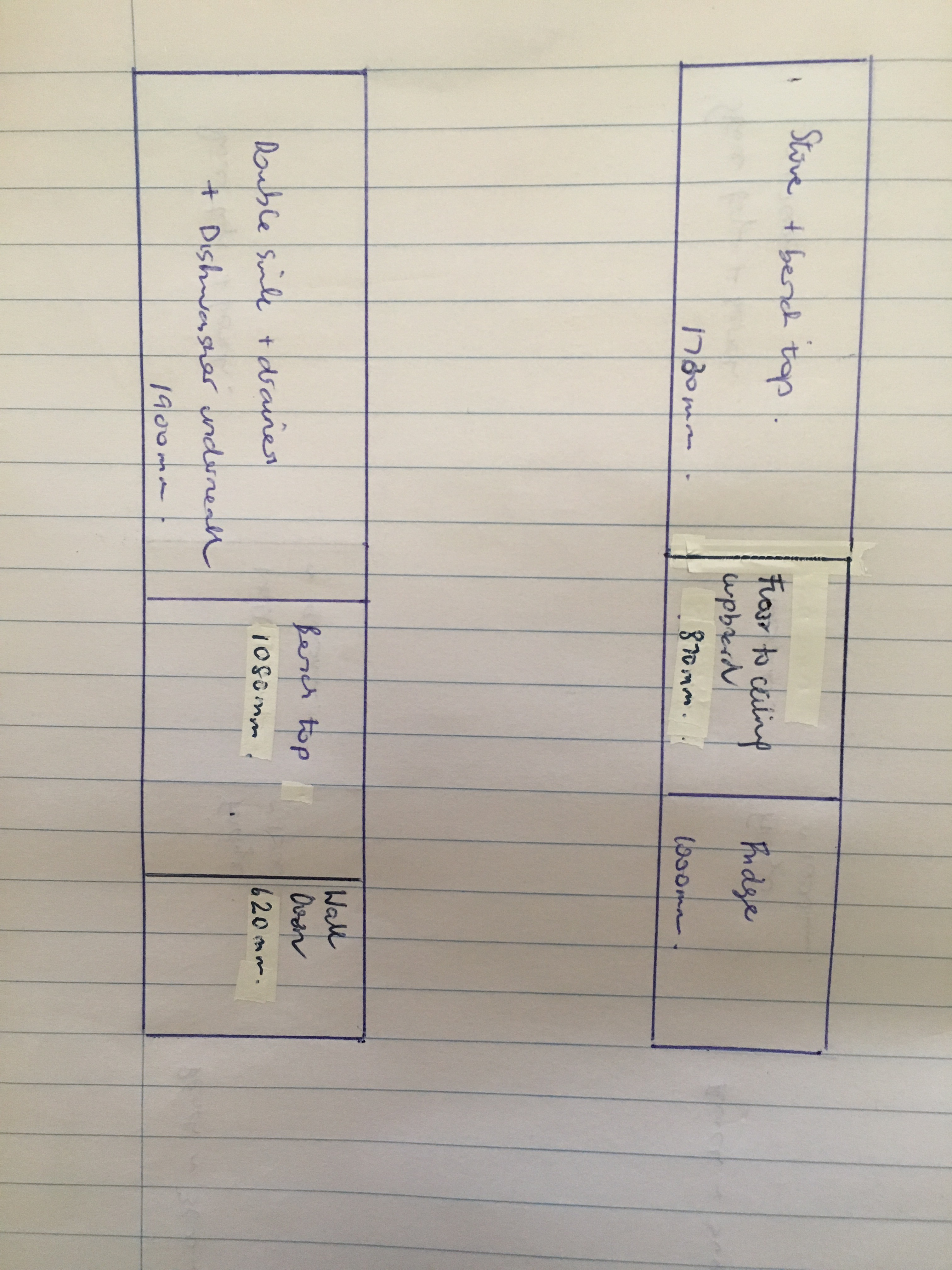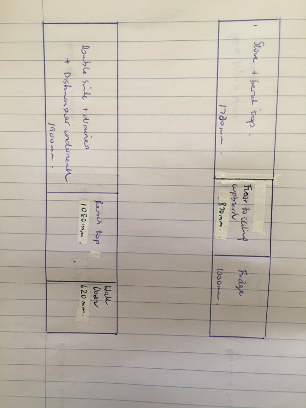 I’ve rejigged the kitchen drawings from the other day by placing the wall oven on the other side. Thus leaving me with a smaller but still reasonable bench space.