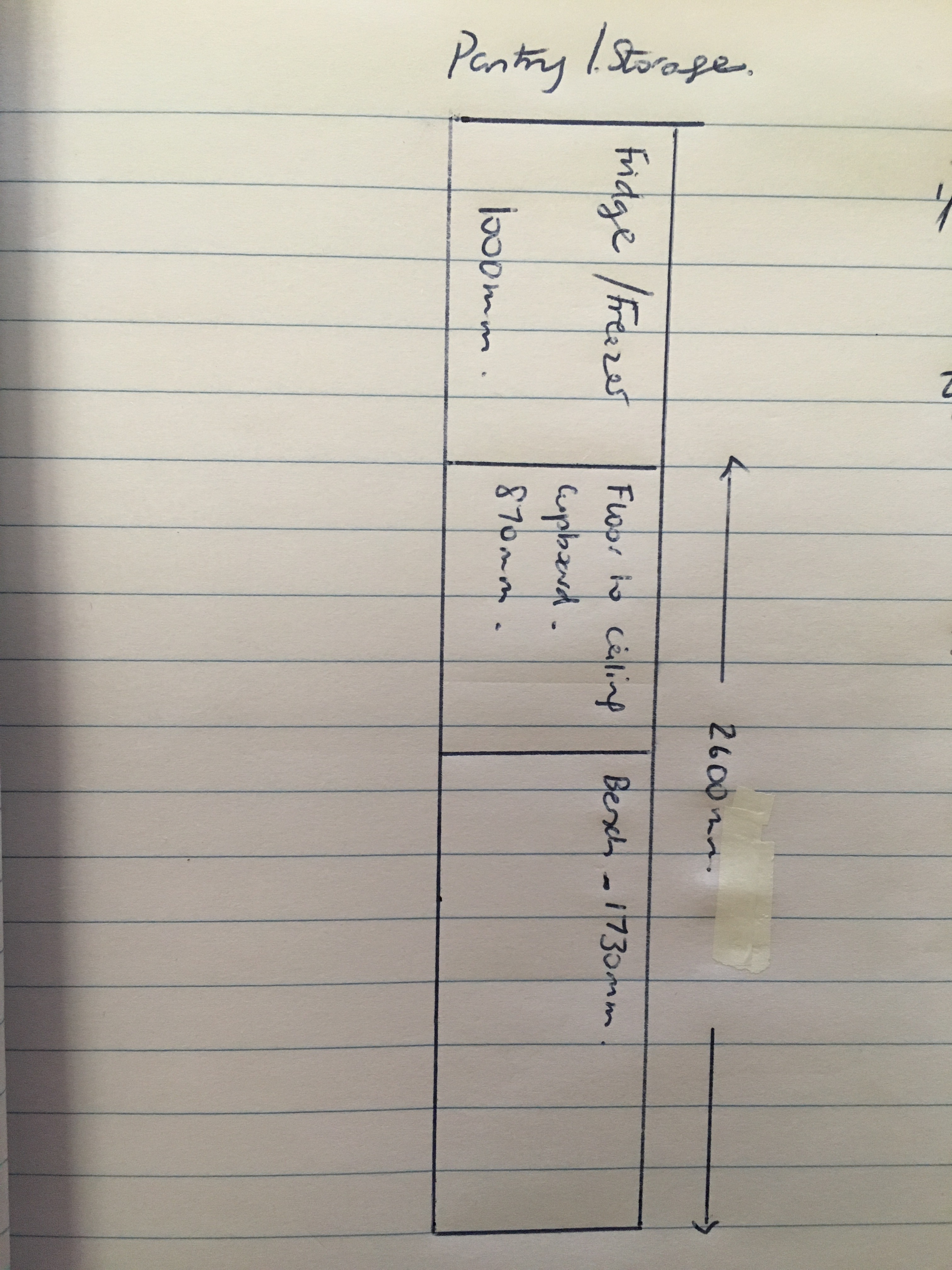 In the pantry I’ll have open shelvings just above the bench like now. Since I won’t have any restrictions it will be a two shelves open storage totalling roughly 3460mm of shelvings instead of 4500mm now with my bits and pieces of shelvings. Which means I’m still a metre short of shelvings.