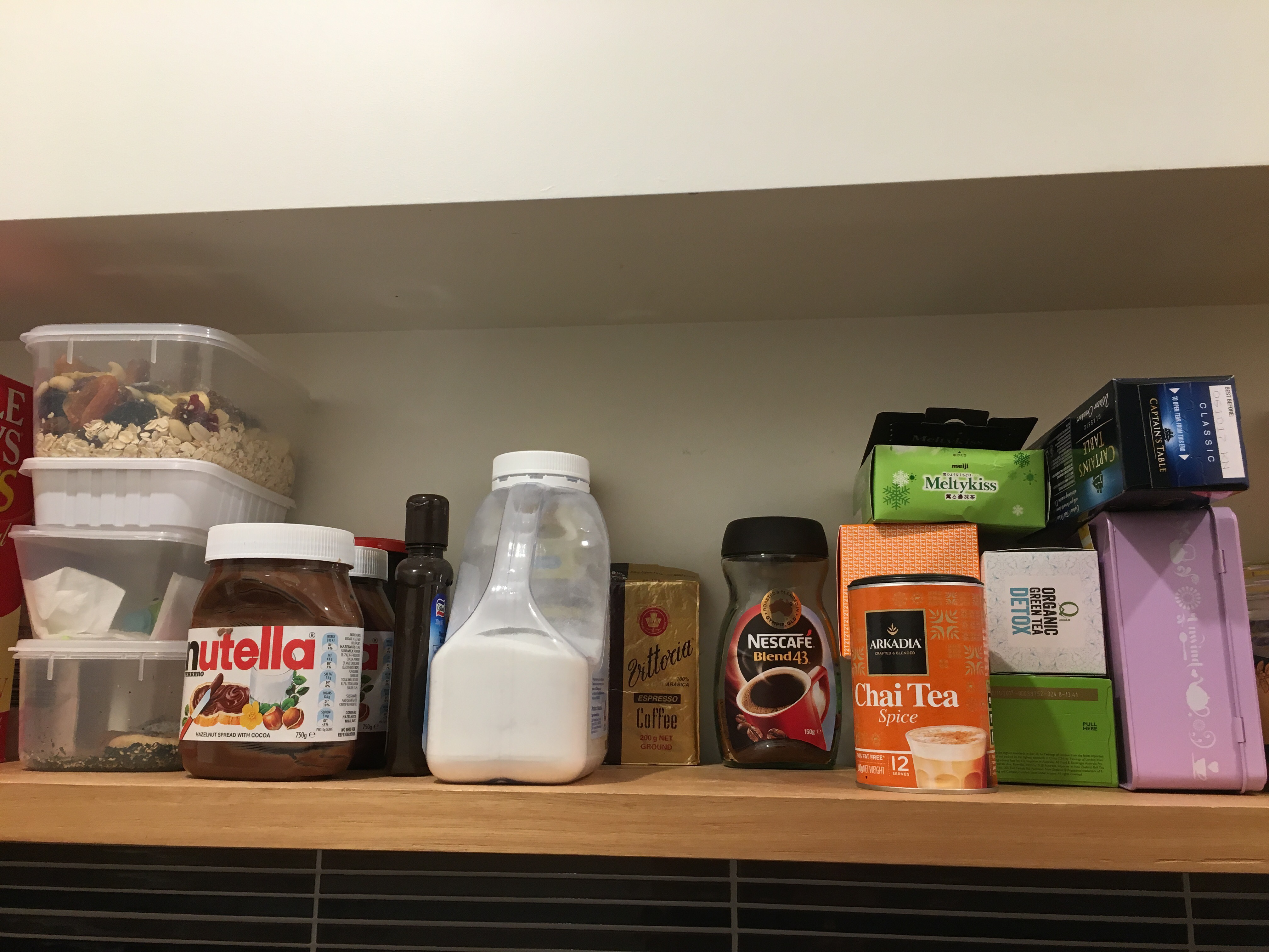 To have more bench space in the kitchen I’ve moved one of the floor to ceiling cupboard into the pantry/storage area. The other option is to turn the open shelvings , room divider into floor to ceiling cupboard.