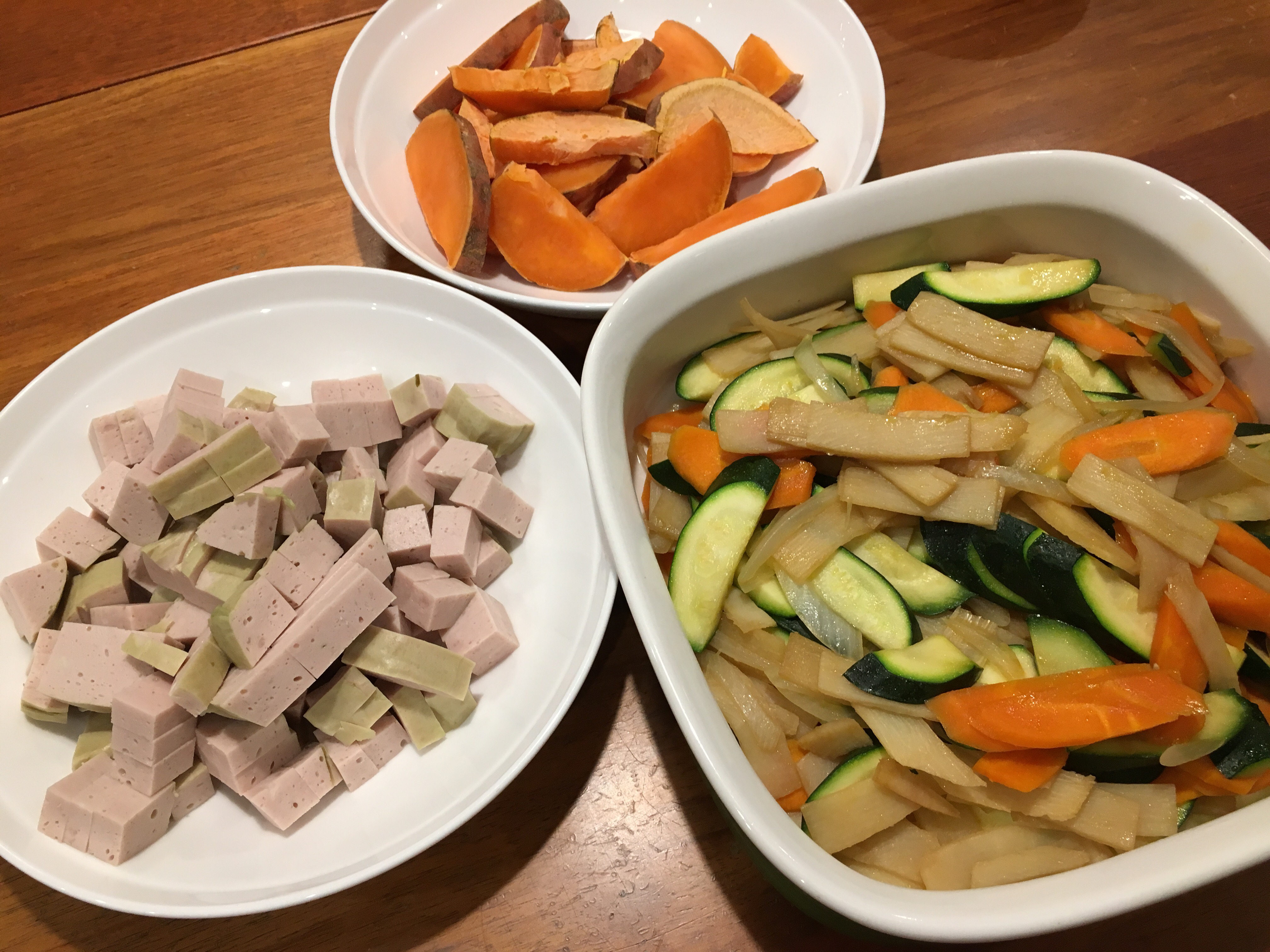 Dinner tonight was whatever I found in the fridge and pantry for the stir fry. As for meat we ended up eating cold meat ,pork loaf. Also found a sweet potato to chuck in the oven.