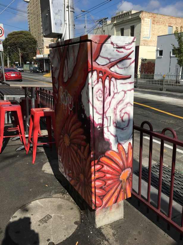A utility box on our way to lunch . It’s outside a pub.