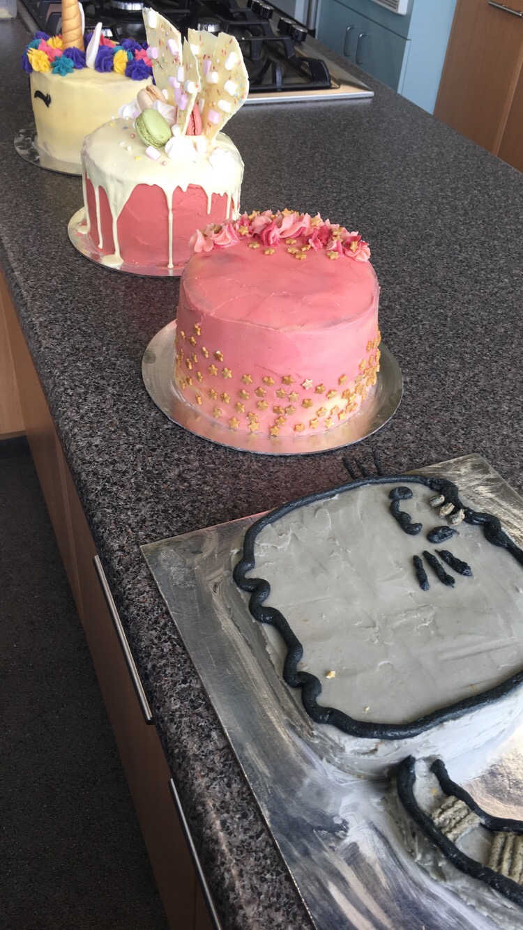 My youngest brought her cake home from school. Her’s is the cat.