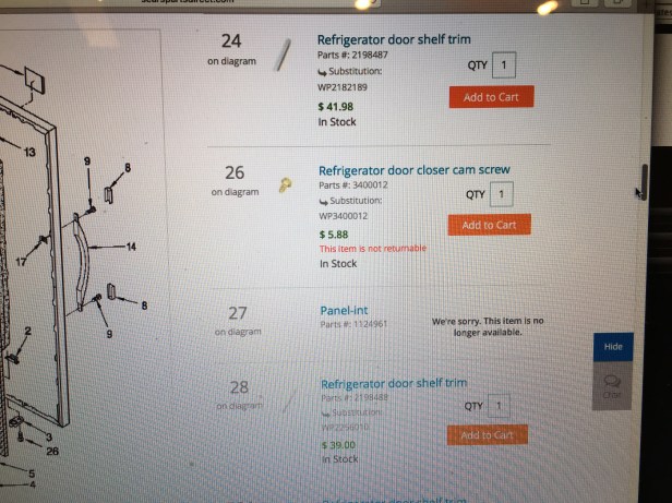 Have since ordered from eBay. I won’t get the part til June. It’s not a huge issue since one of my crispers is on back order til early June.