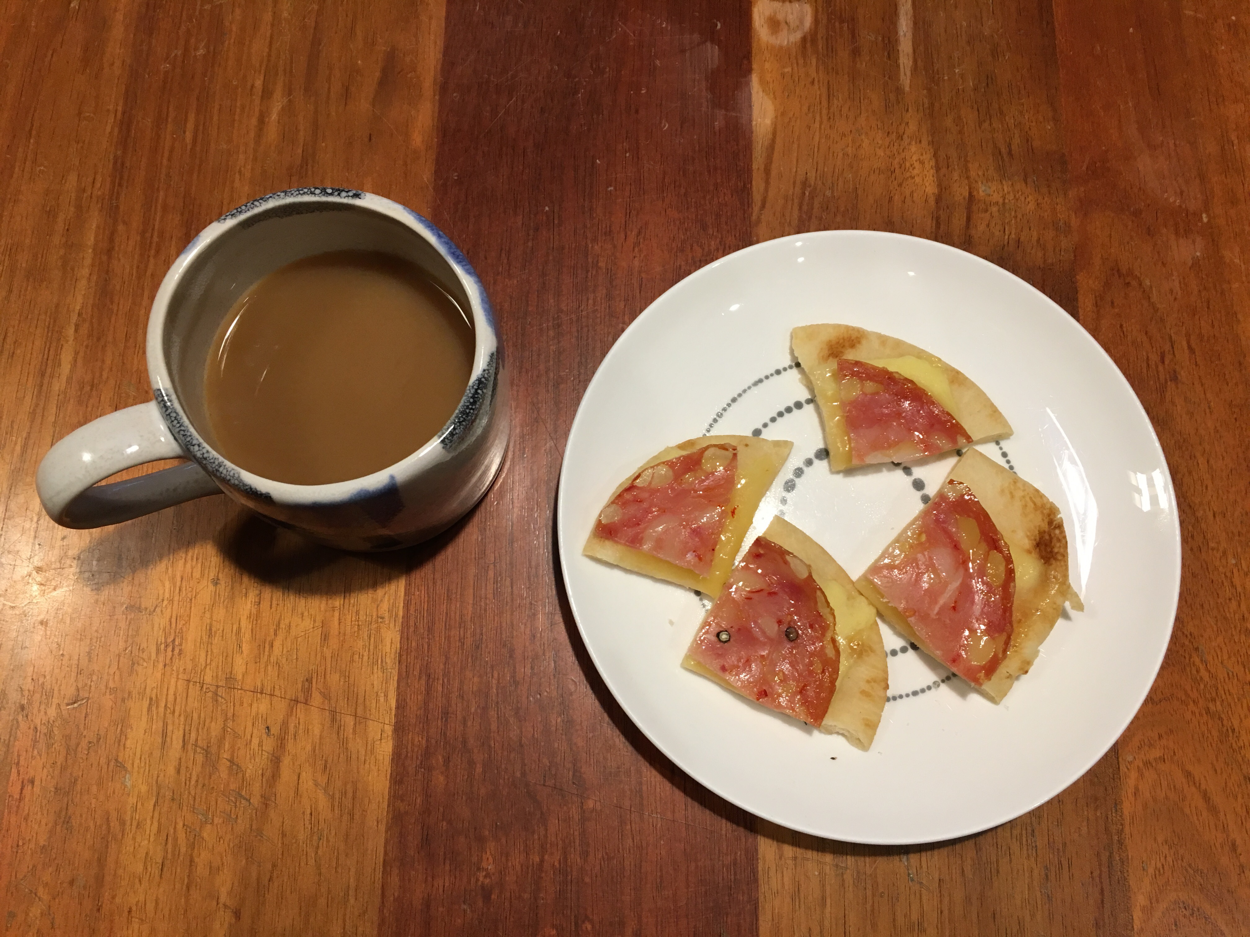 Is better than a holiday or so they say π There’s no bread left this morning. Originally I was going to slit the naan bread in half and pop my cheese and salami in the middle .