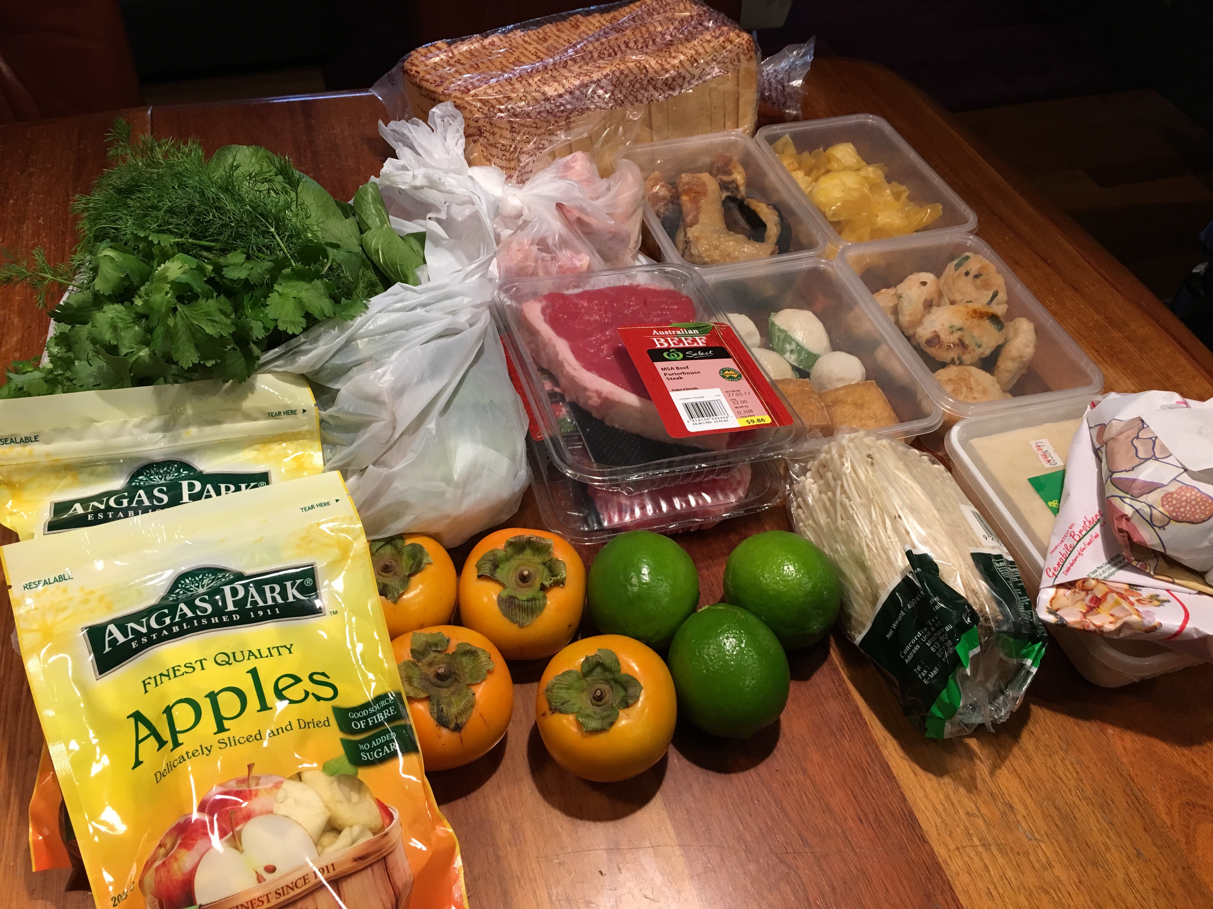 The steaks I’ll slice them thinly to pop into the steam boat. The tofu and enoki will go in as well.