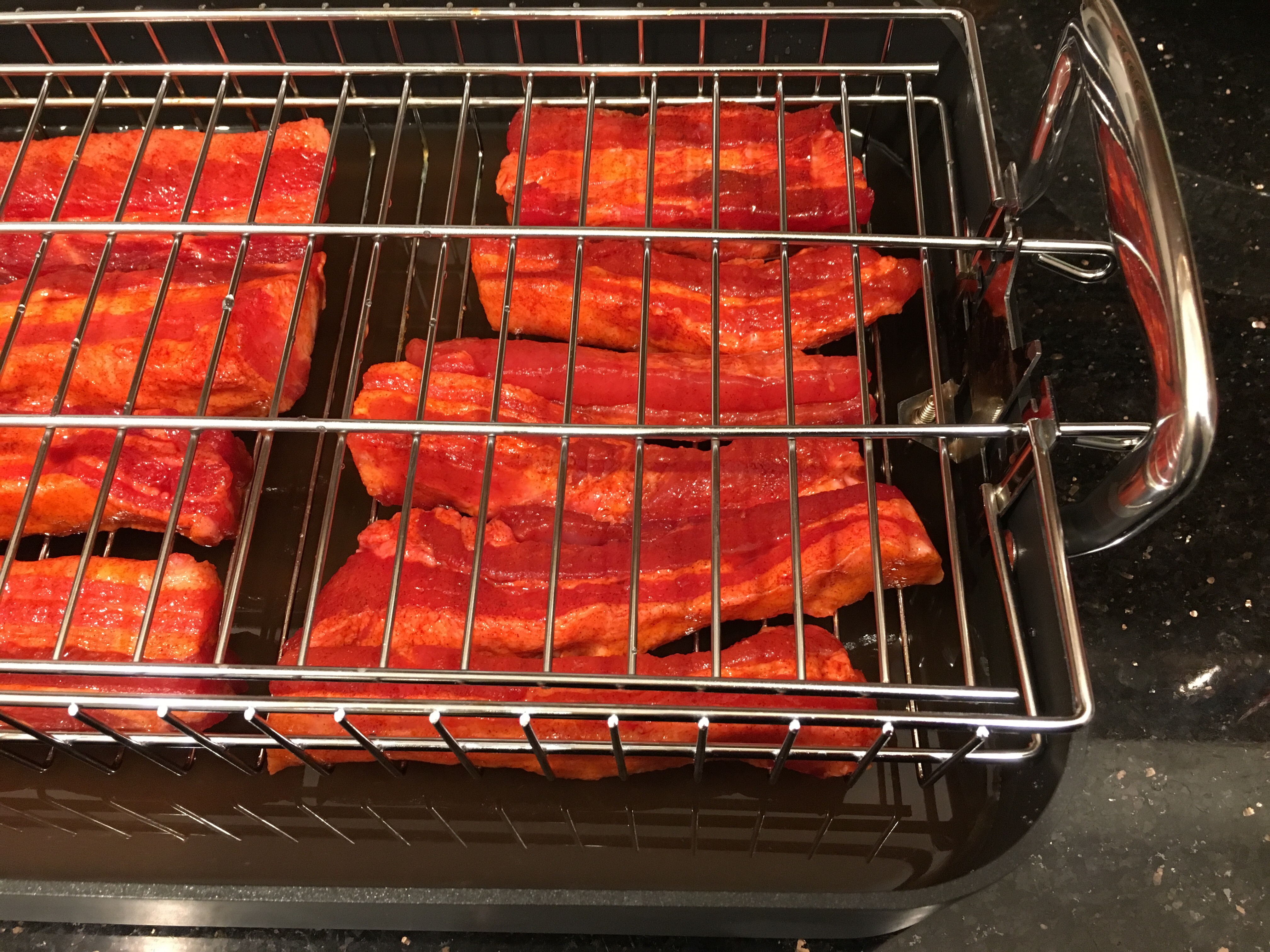 Trying out my new roasting pan with a rack that I bought for our BBQ. The height adjustments let me lower the rack as far as it can go without touching the water.