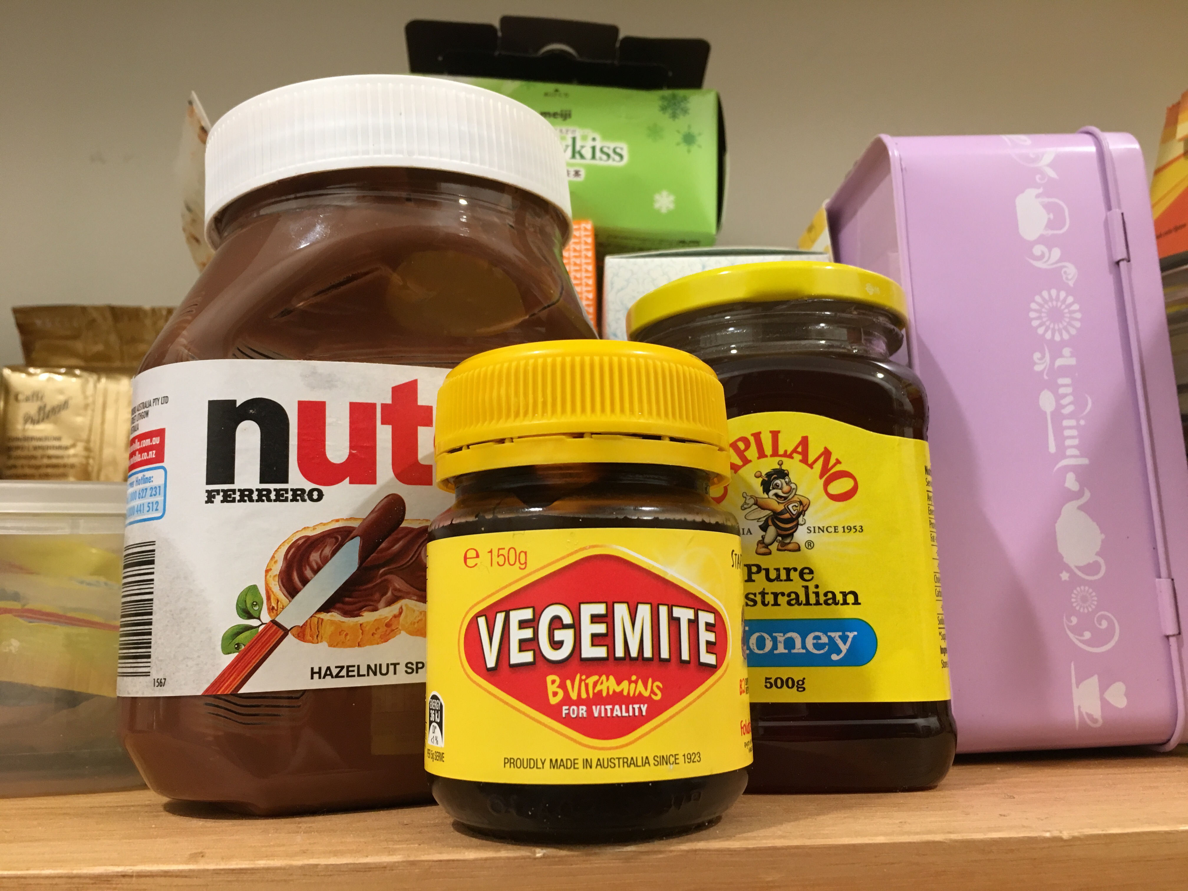 My pantry needs sorting out. My choices this morning for breakkie . Vegemite won hands down.