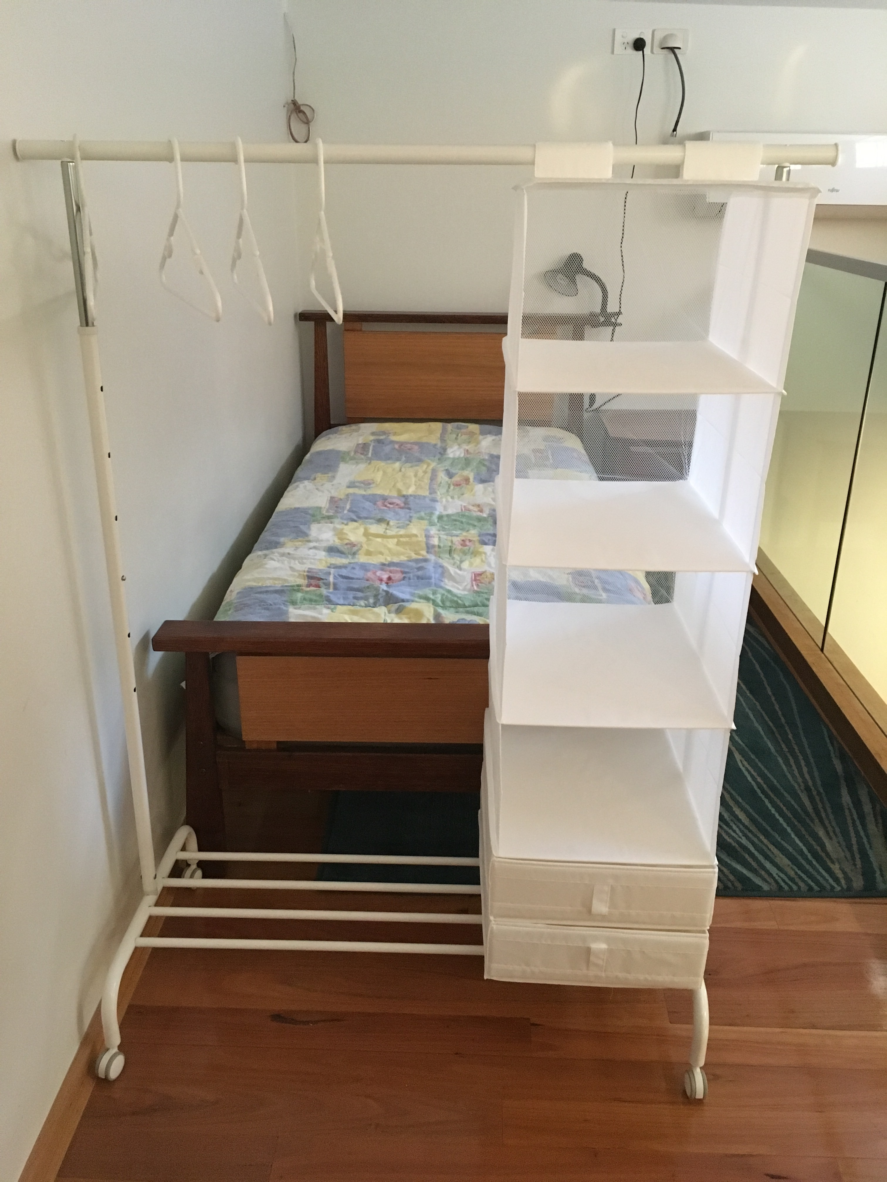 interiors Mission accomplished Date: June 30, 2017Author: Dewy 0 Comments It fitted just perfectly. The legs ended up shorter than the bed’s width. It’s not as flimsy as I thought it was. May be because I didn’t extend it to maximum. Total: $55 Rack : $20 Hanging cubicle $15 Two drawers $10 each Share this: Click to email a link to a friend (Opens in new window) Email Click to print (Opens in new window) Print Click to share on Facebook (Opens in new window) Facebook Click to share on LinkedIn (Opens in new window) LinkedIn Click to share on Reddit (Opens in new window) Reddit Click to share on X (Opens in new window) X Click to share on Tumblr (Opens in new window) Tumblr Click to share on Pinterest (Opens in new window) Pinterest Click to share on Pocket (Opens in new window) Pocket Click to share on Telegram (Opens in new window) Telegram Click to share on WhatsApp (Opens in new window) WhatsApp Like Loading...