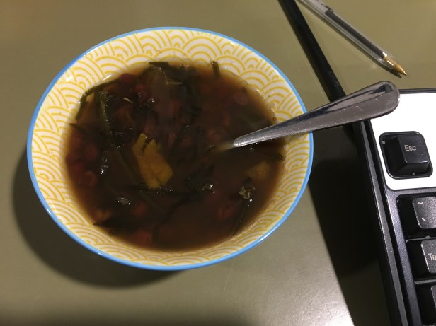 About living upstairs is I can pop up to grab snacks. Red bean, seaweed and kumquat sweet soup.