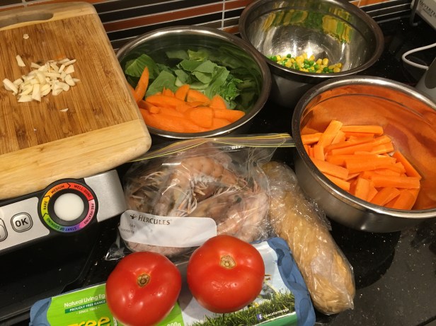 Was going to make scrambled eggs and tomatoes but found my lucky last bag of prawns that was hidden behind my peas and corn 😂 so it will go back into the fridge for another meal.