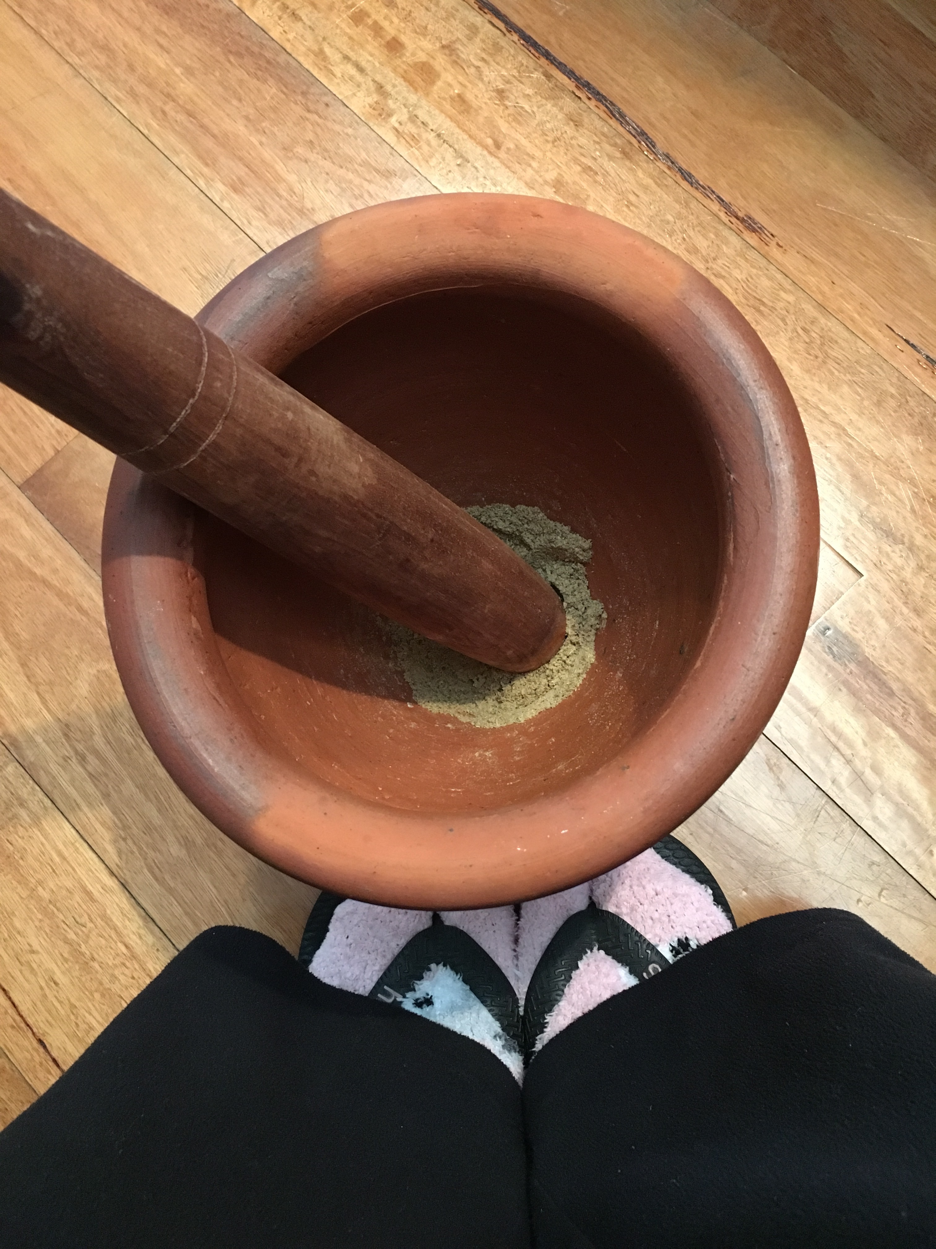Yes that’s me sitting on the step to grind my spices. In my bed socks and thongs 😂
