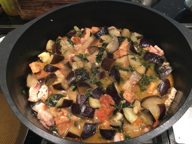 This huge 7L pot of eggplant casserole yielded a take away box of left overs.