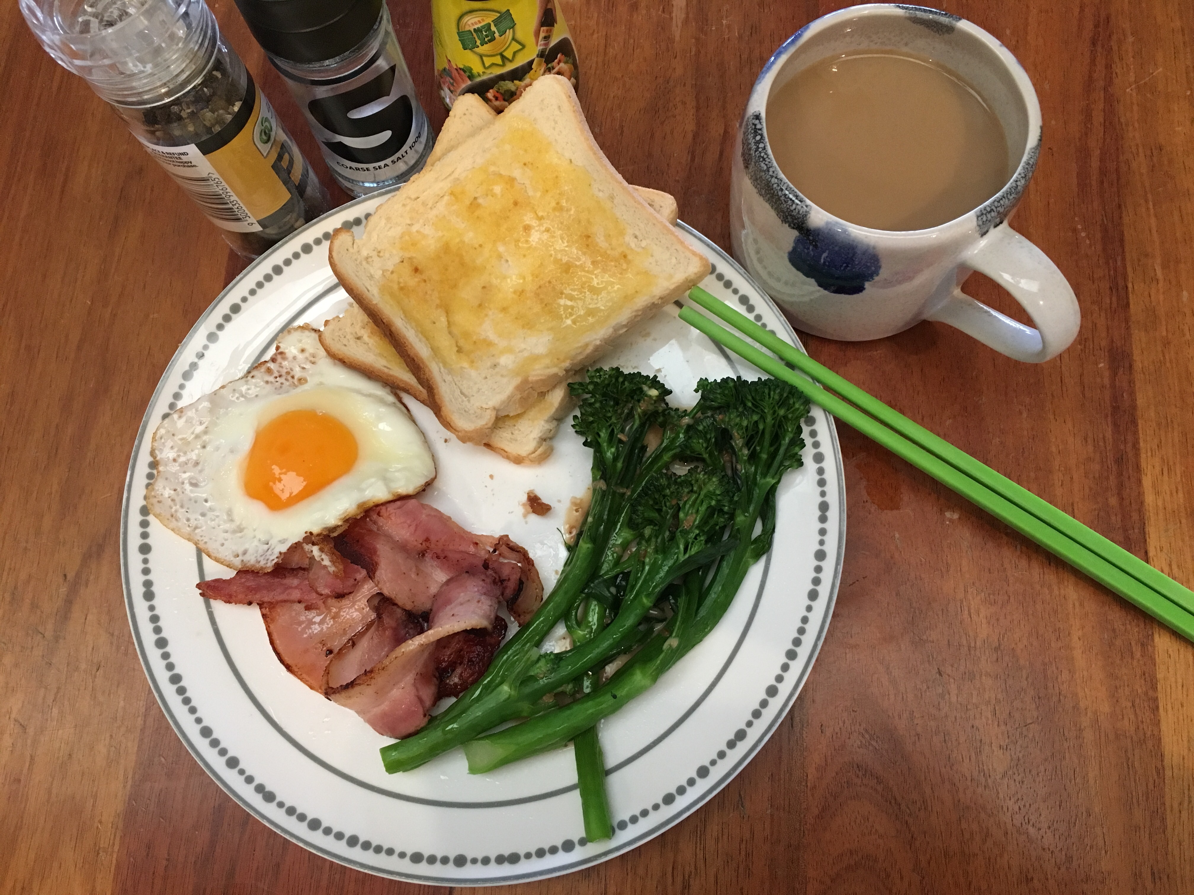Having breakkie and pondering. I went to buy bacon because I had a craving for it the other day.
