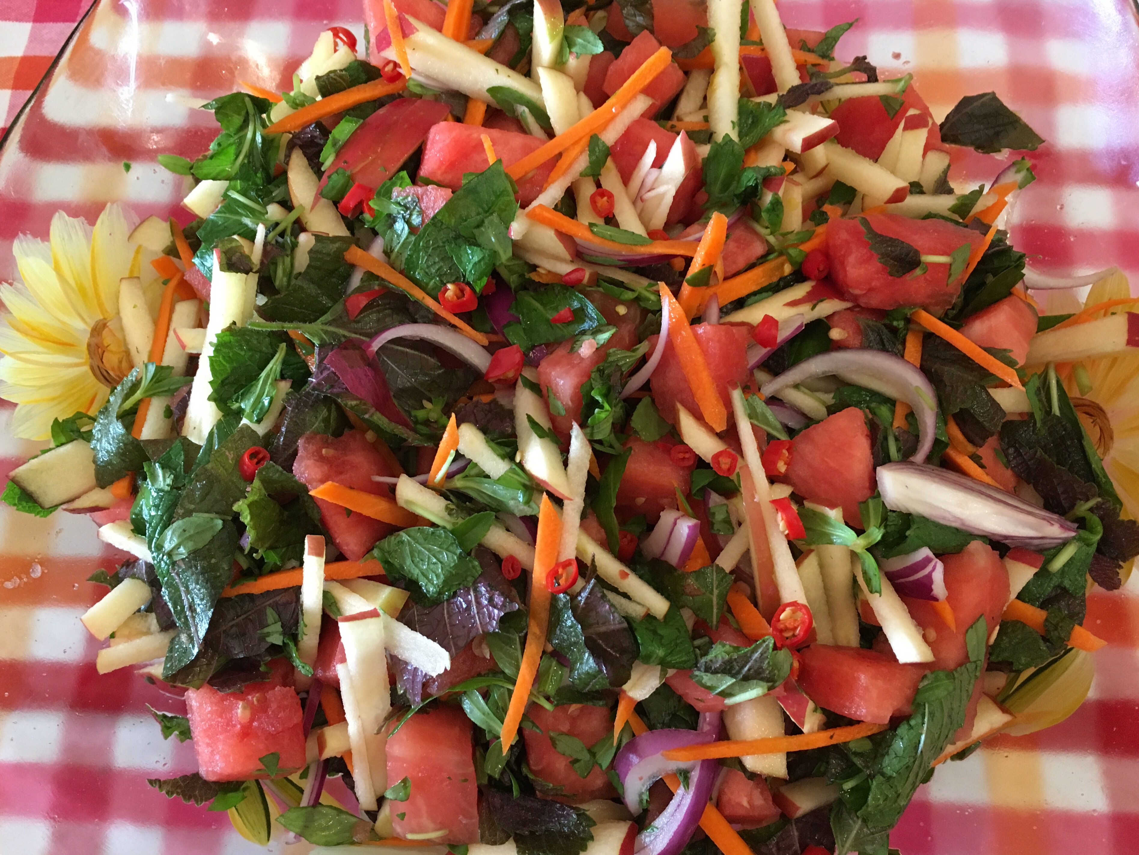 Awhile back I wanted to make paw paw salad and I didn’t have tomatoes so I substituted watermelon for them.