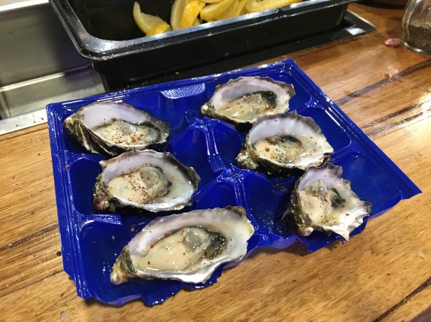 Bought another dozen to bring home for hubby. They are Coffin Bay oysters . Yummo.
