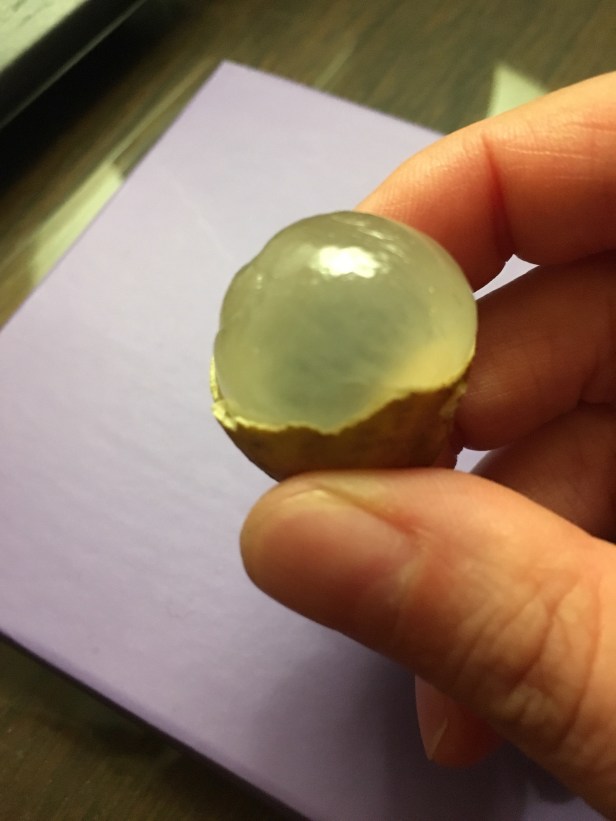 This is what they look like inside. It’s sweet and sour. I actually ate this one and it had no seeds.