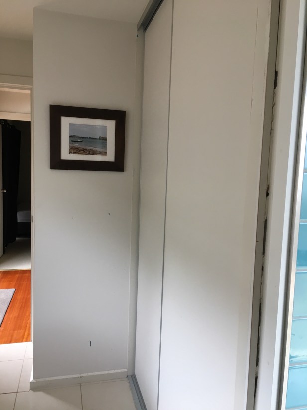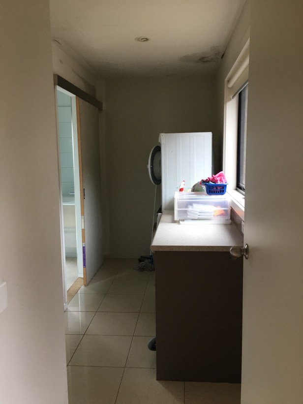 I’m getting rid of the built in linen cupboard as well as the bench. With that water damage I’m not keen for a cupboard there.