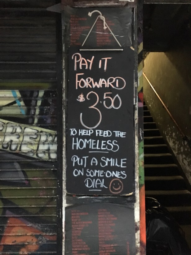 A soup place paying forward. $3.50 will pay for a bowl of soup and some bread for the homeless.