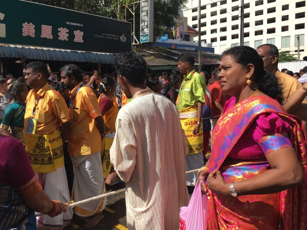 It’s pulled by two ropes by lots of people. In the olden days they would use bulls to pull the chariots. The ladies in their fineries. Very vibrant.