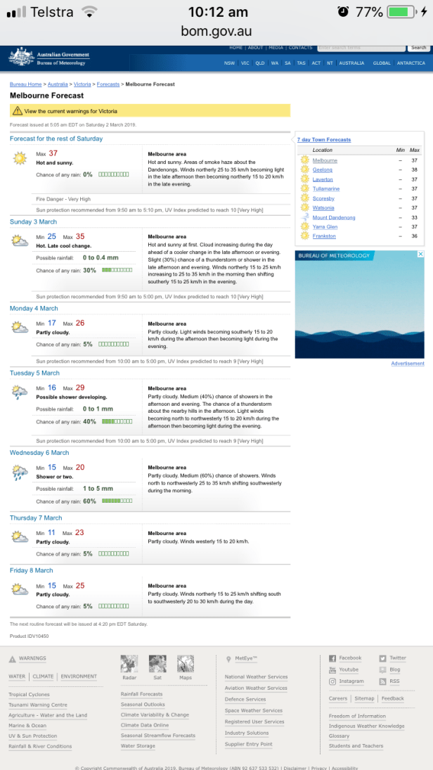 Today’s forecast is 37C which is about 98F. It is going to be a great weekend.