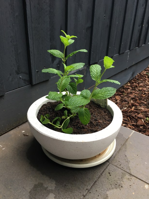 A new addition to my court yard. My friends got me some mint. They asked me what I wanted and I told them not much as no room. I suggested a pot of herb.