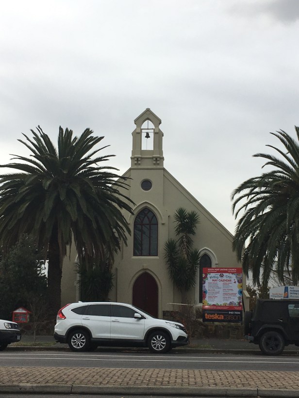 I love how the palm trees “bookend” each side of the church. Very pretty. – Marty